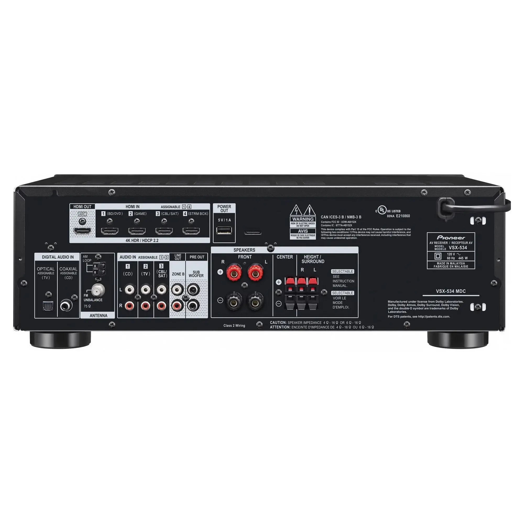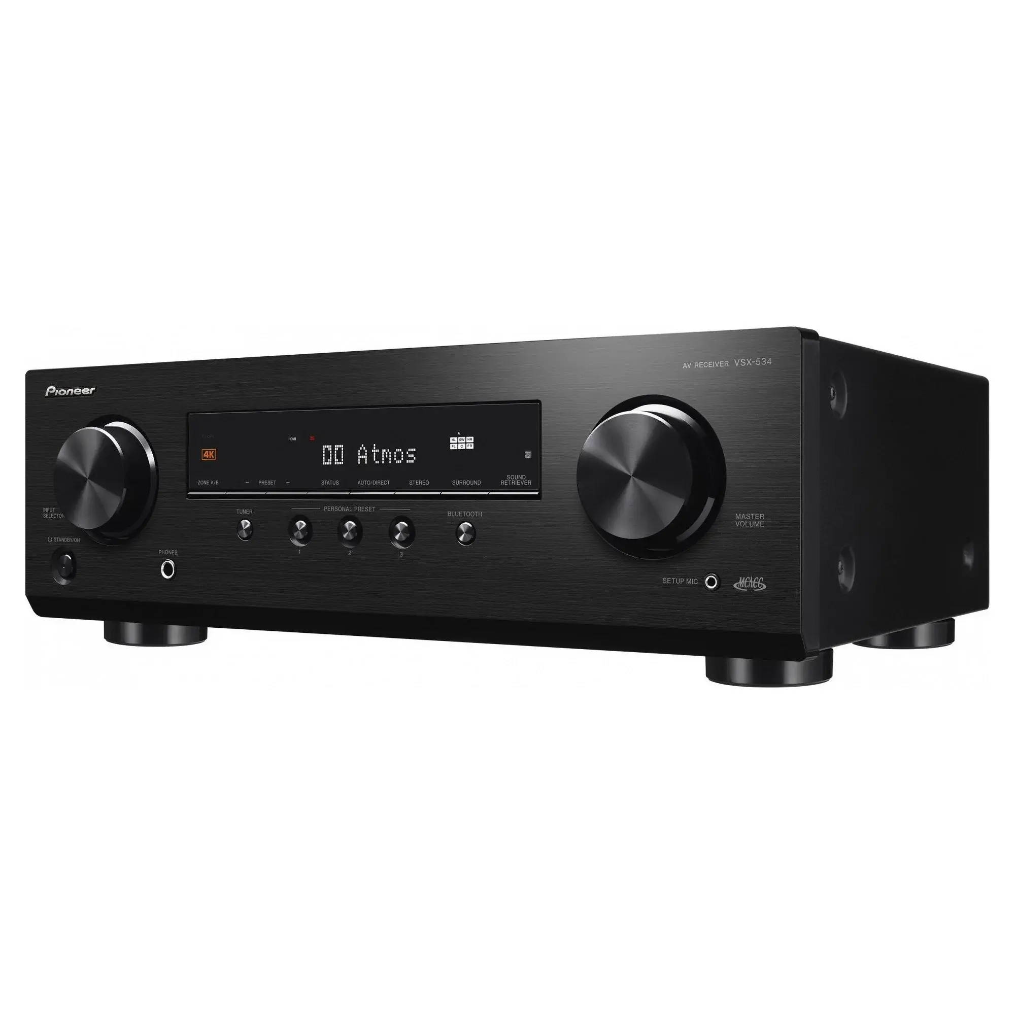 Pioneer VSX 534 - 5.1-канальный ресивер мощностью 5 x 150 Вт с 4 разъемами HDMI (4K), Dolby Atmos, DTS:X, виртуализатором верхних громкоговорителей Dolby Atmos, системой автоматической калибровки MCACC, технологией улучшенной обработки звука Sound Retriever, Bluetooth и USB.