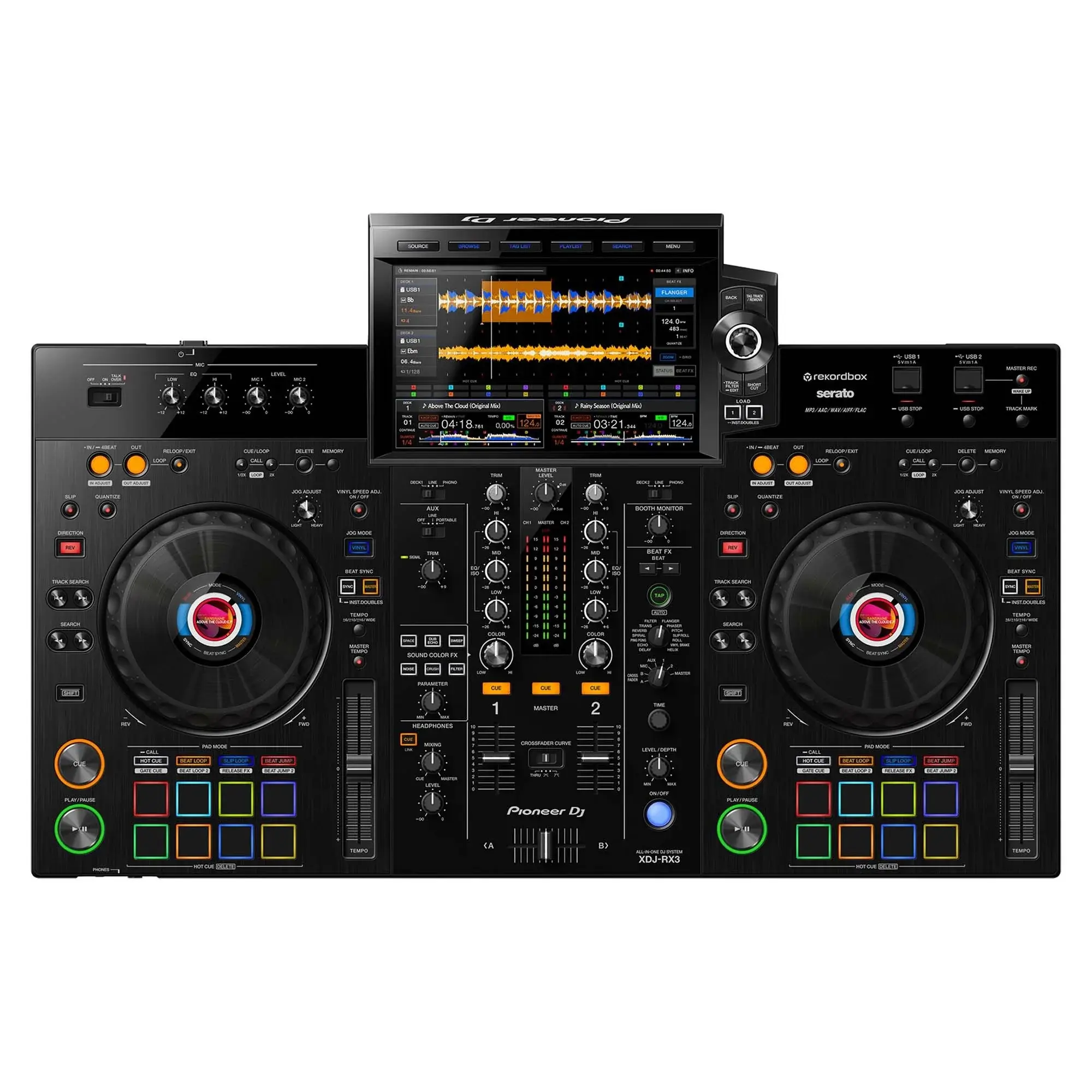 Pioneer XDJ-RX3 - двухканальная многофункциональная DJ-система отличается не только гибкостью и практичностью предшествующей модели, но и рядом новых функций, заимствованных у универсального плеера клубного типа CDJ-3000 и микшера DJM-900NXS2. Кроме того, в этой модели впервые появился новый сенсорный экран размером 10.1 дюйма.
