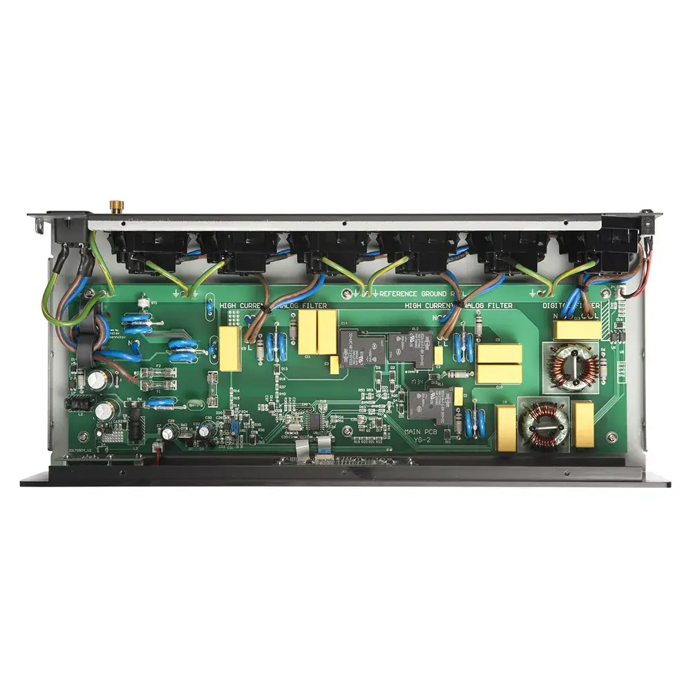Фильтр Powergrip YG-2 позволяет защитить устройства с классическими линейными блоками питания от помех, генерируемых импульсными источниками. При этом Powergrip YG-2 не только устраняет перекрестные помехи по питанию, которые могут вырабатывать AV-техника системы, но и от помех, проникающих по сети извне.