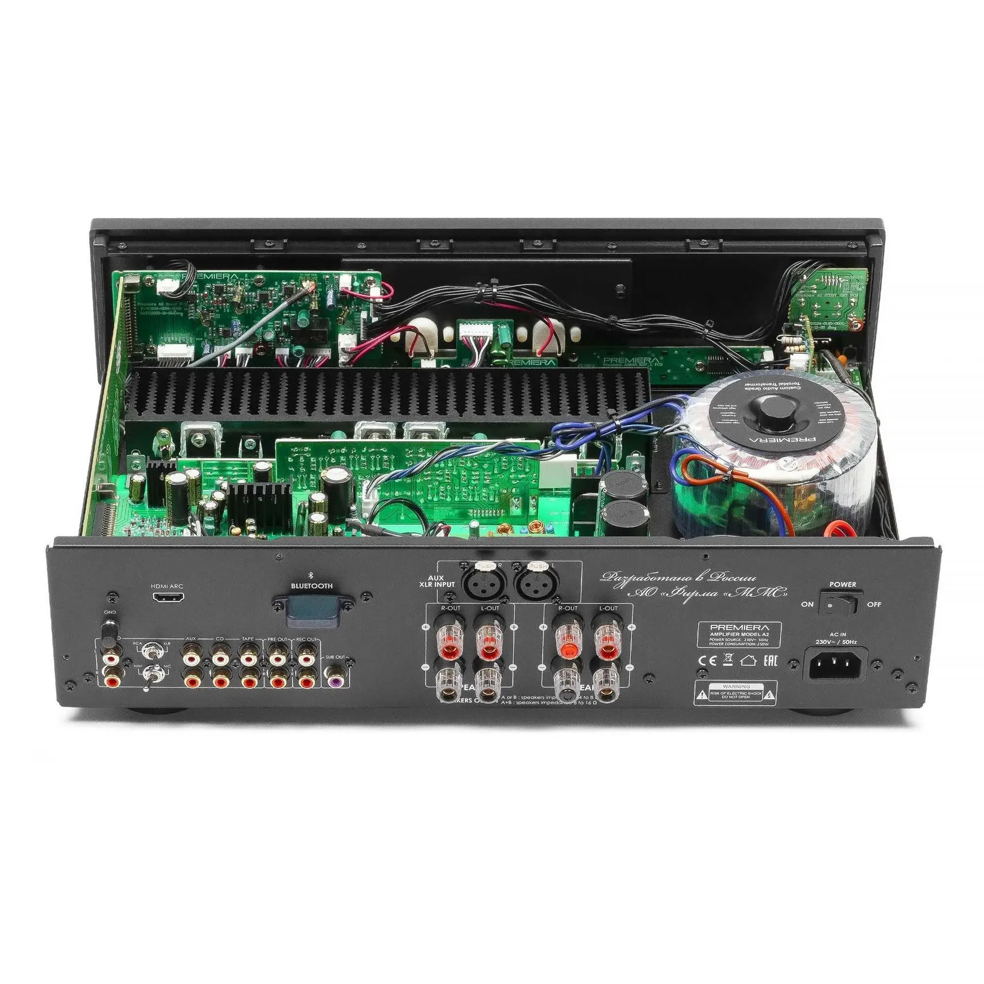 Premiera A2 - современный интегральный Hi-Fi стереоусилитель класса AB со встроенными MM/MC фонокорректором, Bluetooth и HDMI ARC, с номинальной выходной мощностью 55 Вт на канал.