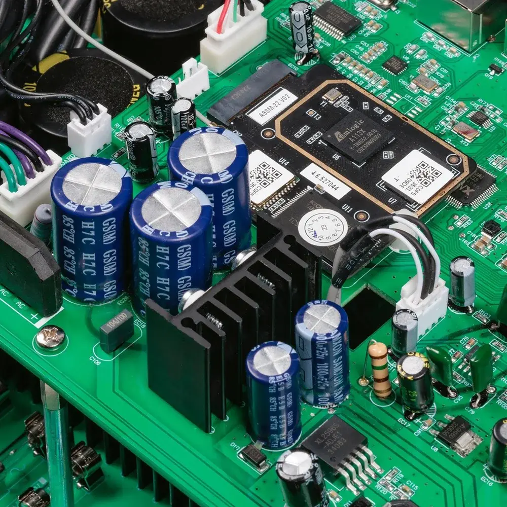 Возможных источников входного сигнала – двенадцать! Вход HDMI ARC расширяет возможности усилителя, позволяя воспроизводить звуковую дорожку с любого современного телевизора. Имеются и четыре аналоговых выхода – один для записи, два регулируемых для внешнего усиления (балансный и небалансный) и один моно (для активного сабвуфера). Цифровой сигнал обрабатывает хорошо известный ЦАП на чипе ES9018K2M Sabre. К усилителю можно подключить дополнительный ЦАП – у T3S имеется оптический цифровой выход. Подключиться к Wi-Fi и настроить сетевой проигрыватель позволяет удобное и понятное мобильное приложение Audio System.