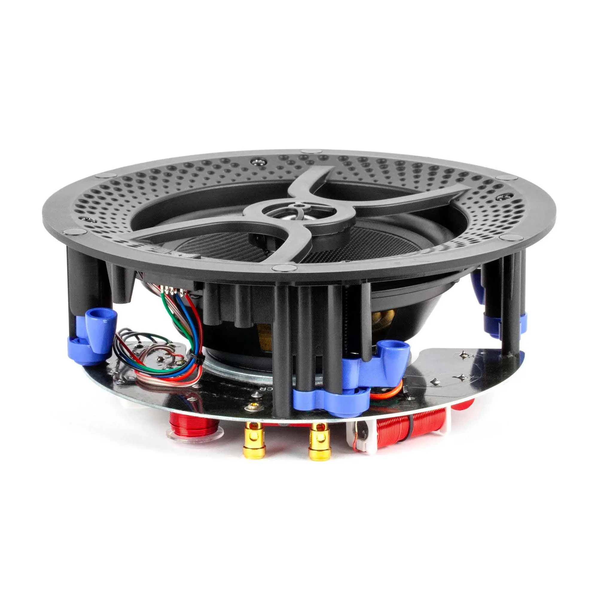 Корпус акустических систем ZC62R сконструирован для установки в стену или в потолок и имеет установочный размер диаметром 210 мм. Два динамика – высокочастотный 1-дюймовый с титановым куполом и низкочастотный 6.5-дюймовый из плетеного стекловолокна – обеспечивают воспроизведение в диапазоне частот от 60 Гц до 20 кГц при рекомендованной мощности усилителя от 20 Вт до 60 Вт (8 Ом). Акустические системы комплектуются металлическими защитными решетками белого цвета на магнитных креплениях.