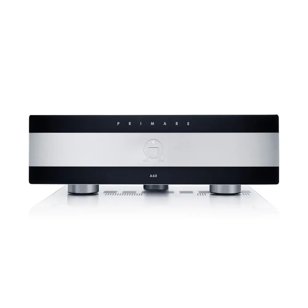 Усилитель мощности Primare А60 выполненный в едином дизайнерском ключе с предусилителем серии, работает в классе D и собран по оригинальной схеме UFPD (Ultra Fast Power Device — сверхбыстрый усилитель мощности). Главное преимущество такой схемы — высокий КПД и, соответственно, малые размеры при значительной выходной мощности.