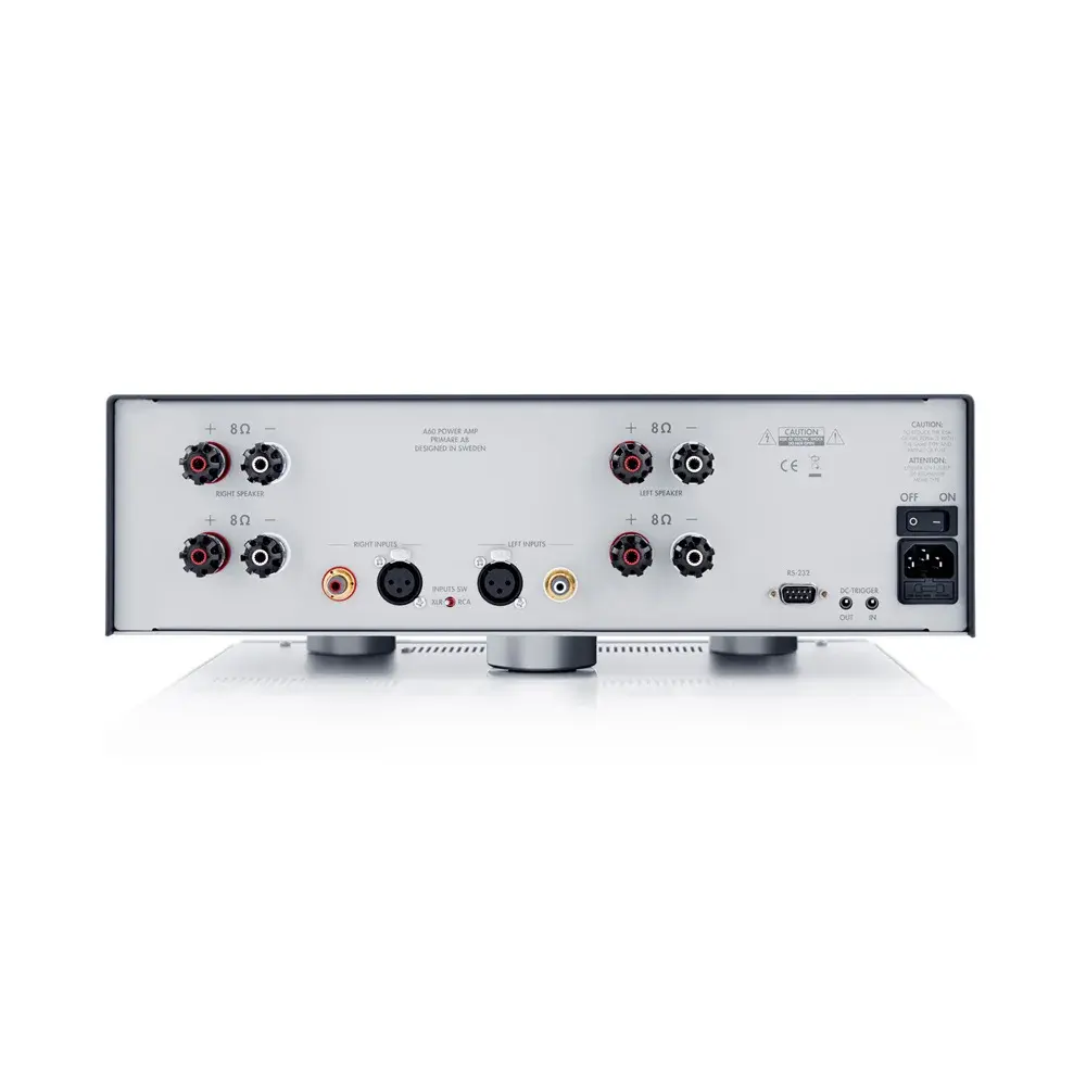 В Primare A60 используется 4 дискретных усилителя с технологией UFPD с балансной конфигурацией (по 2 на каждый канал). Уникальный стальной корпус (передняя панель из алюминия толщиной 15 мм). Все для того, чтобы обеспечить необходимую жесткость, и защиту от внешних помех, создаваемых другими компонентами системы. Каждый канал представлен тремя типами входов: небалансные RCA, балансные XLR от Neutrik и высококачественные акустические разъемы WBT Nextgen. Помимо этих входов есть релейный вход и вход для подключения RS232.