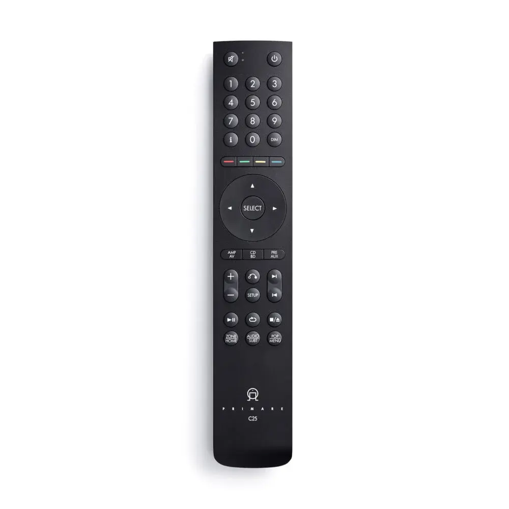 Пульт дистанционного управления C25 входит в комплект всех продуктов поколения Primare Prisma и имеет совершенно новые запатентованные коды управления для более быстрого реагирования и уменьшения помех.
