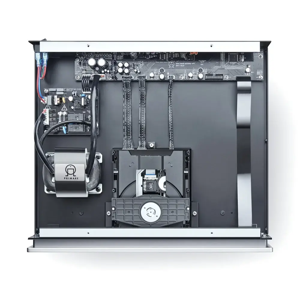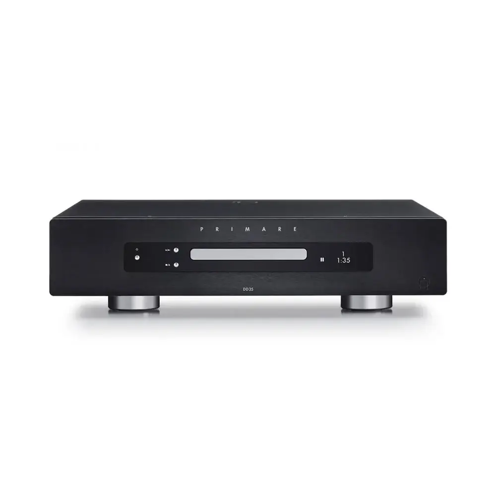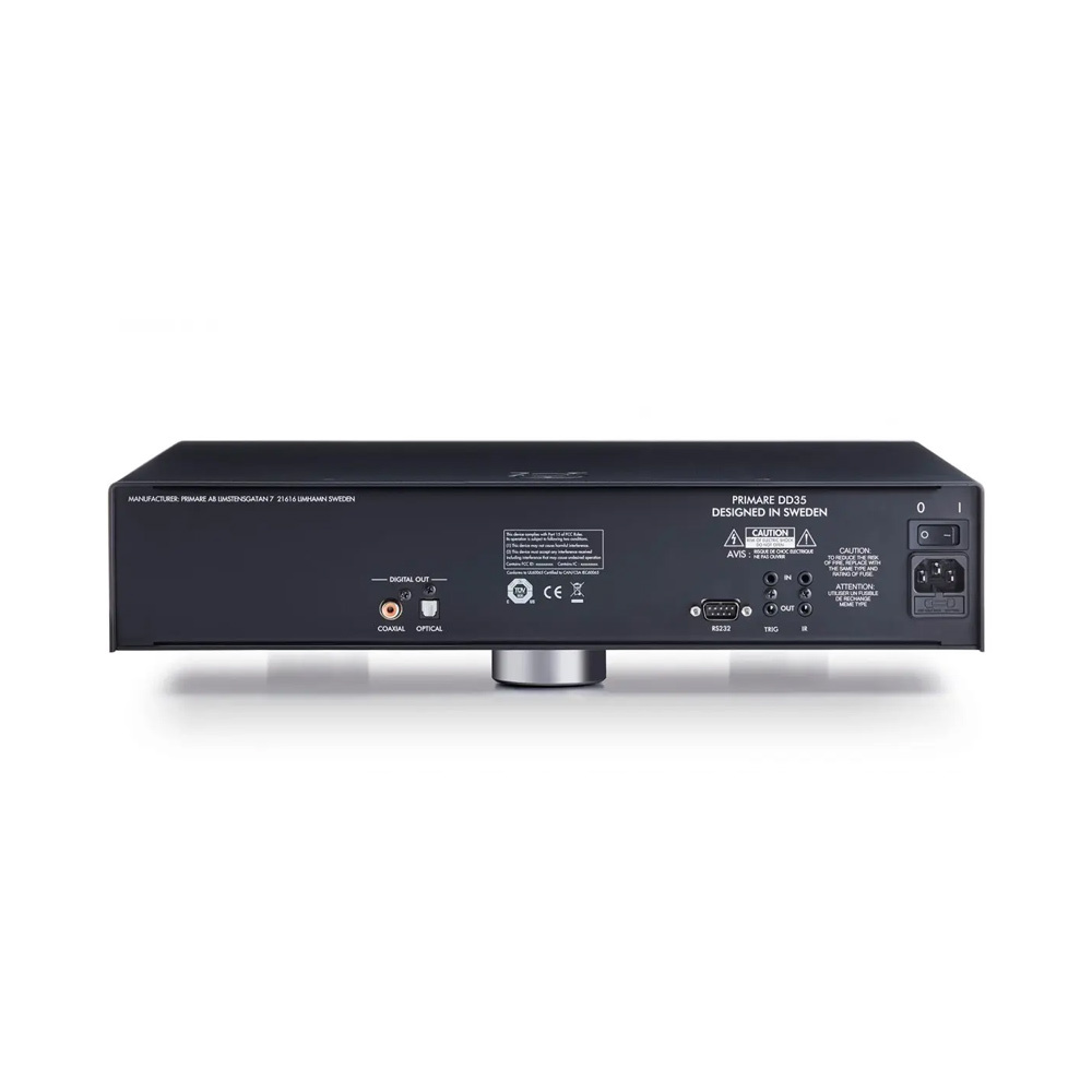Топовый CD транспорт Primare DD35 сами разработчики называют лучшим в истории компании. Проигрыватель оснащен CD-приводом TEAC CD 5020A-AT. Проигрыватель оборудован цифровыми выходами коаксиального и оптического типа. На задней панели плейера располагаются все необходимые вспомогательные разъемы: входы/выходы триггера 12 В и внешнего ИК-датчика, а также RS-232.