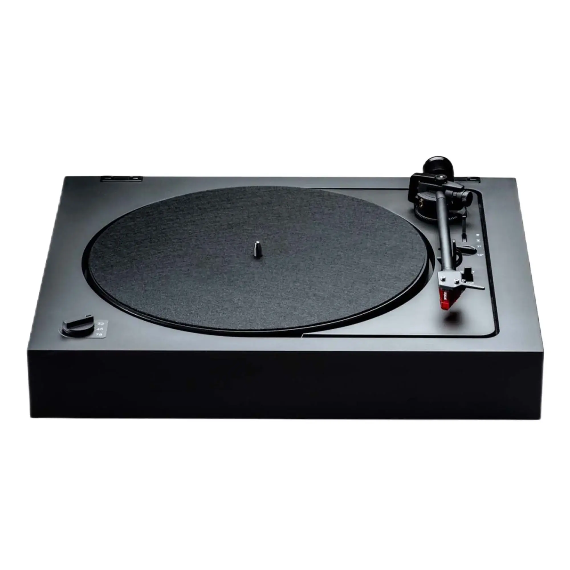 Модель A2 оснащена сверхлегким алюминиевым тонармом 8.3 дюйма с установленной головкой Ortofon 2M Red. Узел вращения – карданный 4-точечный. Важным новшеством модели является новая система установки прижимной силы с прецизионной часовой пружиной и демпфированным противовесом. Плинт выполнен из МДФ с субшасси и покрашен вручную 8 слоями матового черного лака. Привод вертушки управляется электроникой.