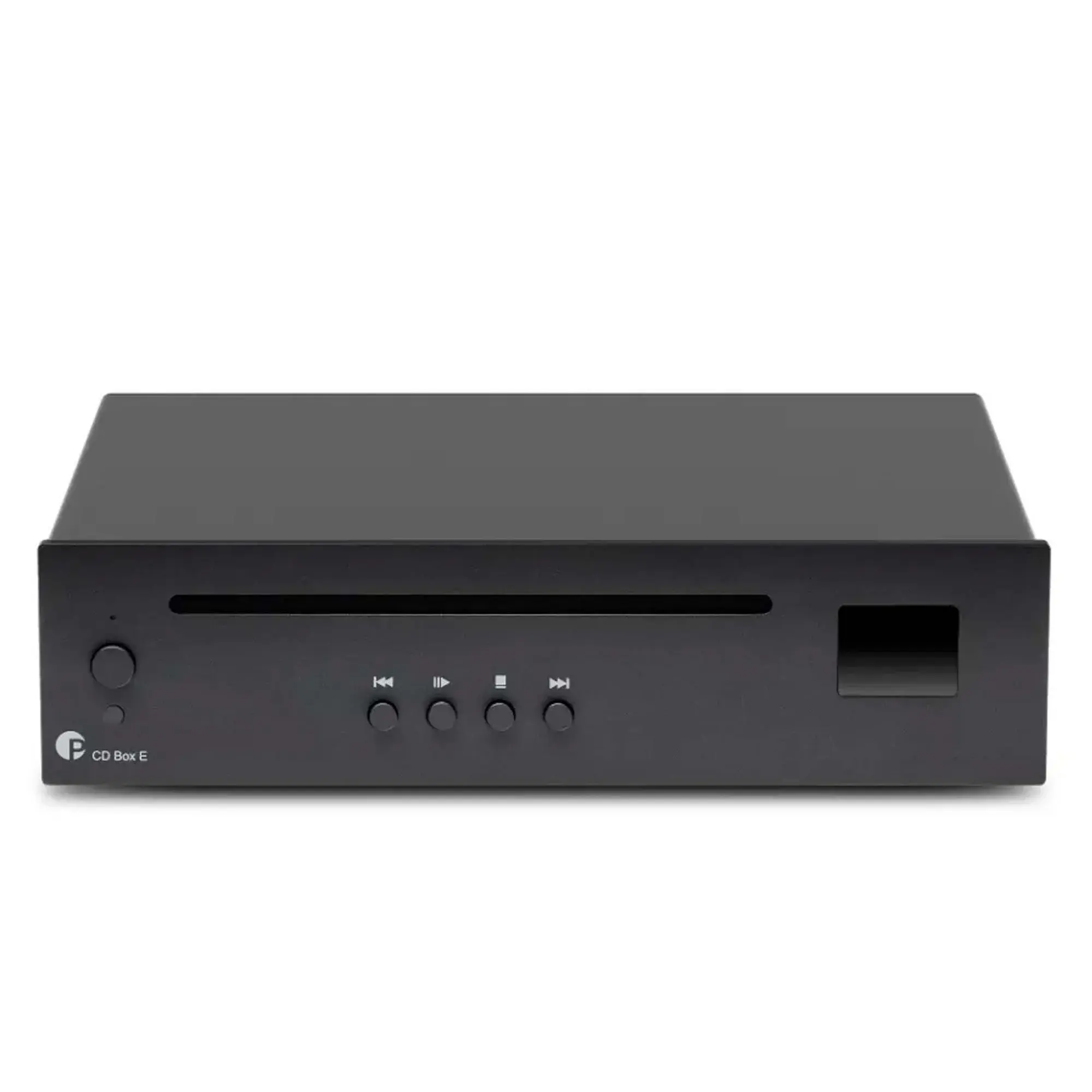 CD Box Е оснащен ЦАП MS8413 с параметрами 24 бит / 192 кГц. Обработка данных осуществляется с высокой точностью, исключающей появление искажений звука. Плеер оборудован фиксированным аналоговым выходом на разъемах RCA. Есть и коаксиальный S/PDIF выход для внешнего ЦАП. Это расширяет возможности встраивания проигрывателя в существующую систему. На фронтальной панели Pro-Ject CD E расположены кнопки управления основными функциями и дисплей с диагональю 1,54 дюйма. Вы всегда сможете контролировать режимы работы плеера. В комплект поставки модели входит пульт ДУ.