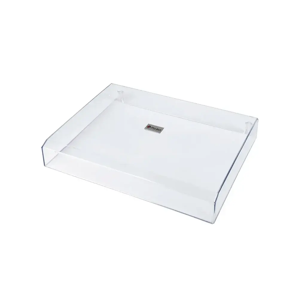 Крышка выполнена из прозрачного акрила, что позволяет сохранить видимость самого проигрывателя и его дизайн. Прозрачность также позволяет контролировать состояние винила во время проигрывания.