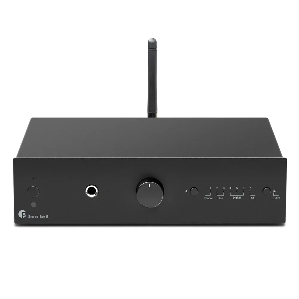 Pro-Ject Stereo Box E – компактный интегральный усилитель «все в одном», оснащенный шестью входами для аналоговых и цифровых источников, а также Bluetooth AptX HD, что делает аппарат универсальным решением для построения современной стереосистемы. Усилитель развивает до 40 Вт выходной мощности и справится практически с любой полочной акустикой.