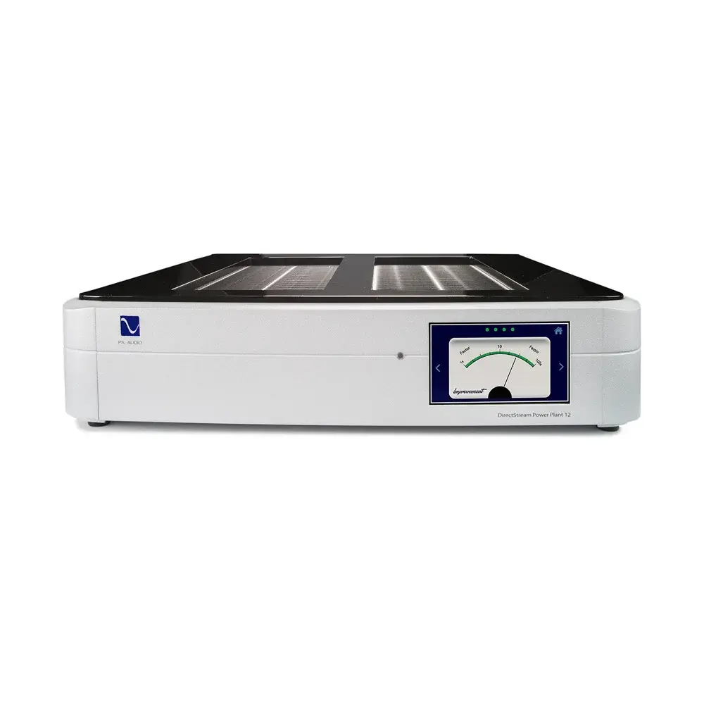Модель оснащается более компактным корпусом по сравнению со старшими массивными регенераторами данной серии. Для охлаждения применяются радиаторы в сочетании с тихими вентиляторами, а для подключения AV-компонентов служат 4 розетки Schuko. В правую часть лицевой панели встроен цветной сенсорный ЖК-дисплей, на который помимо индикаторов потребляемой мощности, входного/выходного коэффициента искажений и улучшения качества питания выводится даже осциллограф. Для установки времени задержки вкл./выкл. определенных розеток, ручной регулировки выходного напряжения и других настроек имеется отдельный режим меню. Для управления PS Audio PerfectWave Power Plant 12 можно использовать как веб-интерфейс, так и обычный штатный пульт. Для реализации веб-управления имеется Ethernet-порт. Есть два триггерных гнезда (вход/выход), а обновлять ПО регенератора можно с помощью SD-карты, для которой на тыльной стороне корпуса имеется соответствующий слот.