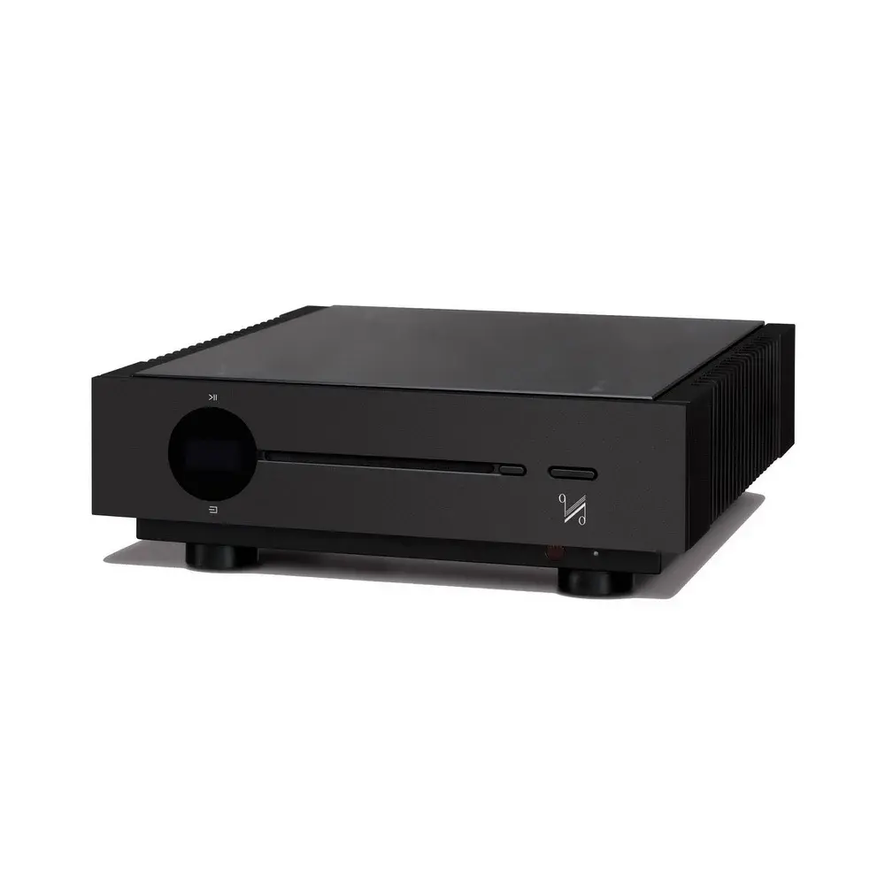 В проигрывателе Quad Artera Play+ Диски считывает щелевой привод, который сначала загружает данные в буфер и только потом отправляет их в ЦАП. Для подстройки звучания доступны четыре варианта цифровых фильтров. Судя по компоновке задней панели, внутри аппарат зонально разделен: в правой части (если смотреть сверху) находится цифровая начинка, слева – вся аналоговая. В источнике питания помимо тороидального трансформатора с раздельными обмотками и стабилизаторами имеется фильтр для отсечки наводимых из электросети помех. Дисплей – простейший, на матрице, не создающей наводок. Управление сводится к паре сенсорных кнопок и паре физических (подача питания и привод загрузчика).
