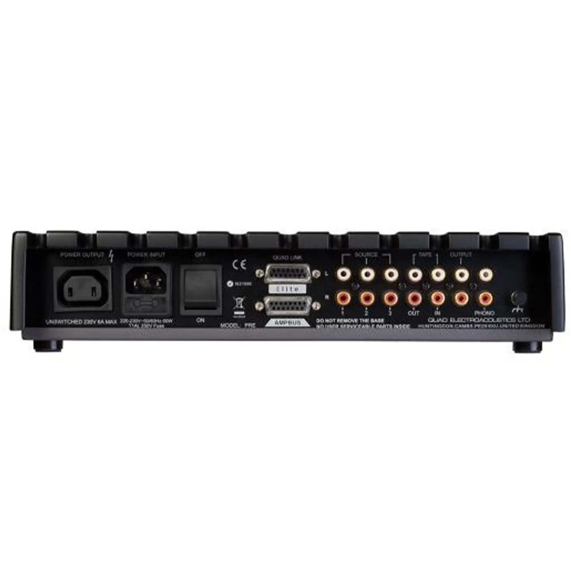 Модель оснащена двумя пятнадцатиконтактными интерфейсами системных шин QUADLINK (для связки с CD-проигрывателем, тюнером и др. компонентами Quad Elite) и AMPBUS (для подсоединения фирменных усилителей мощности). Обе шины позволяют не только идеально синхронизировать всю систему и управлять ею посредством одного пульта, но и обеспечивают полноценное балансное подключение для передачи аудиосигнала. А это значит, что при использовании родных Elite-компонентов можно обойтись без обычных межблочных шнуров. На борту также присутствует набор линейных входов RCA, вход фонокорректора, петля записи-мониторинга и RCA-выход (Pre Out). Фонокорректор поддерживает работу с MM- и MC-картриджами, что оценят любители винила. Режим работы под требуемый тип картриджа выбирается с помощью кнопки на фасаде.