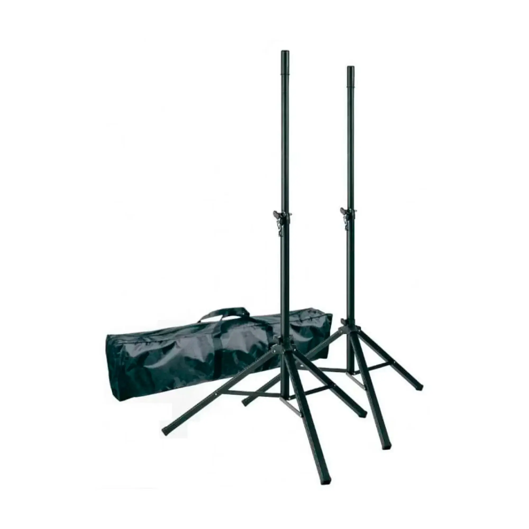 Стойки поставляются с нейлоновыми адаптерами для монтажа кабинетов под 38 мм (1.5”) и сумкой-чехлом для переноски. Высота регулируется в диапазоне от 1090 до 2050 мм, а вылет треноги – от 610 до 1200 мм. Анодированное черное покрытие превосходно впишется в любой интерьер. Максимальный вес нагрузки на каждую стойку составляет 45 килограммов.
