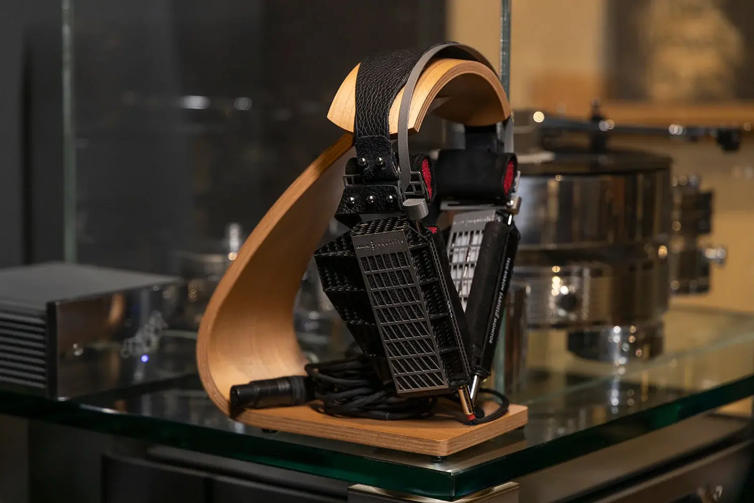 Импеданс драйверов SR1a составляет всего 0.18 Ом, что несовместимо с классическими усилителями для наушников. Передача сигнала на наушники осуществляется через интерфейсный блок усилителя Ribbon/Amp Interface. Блок устанавливается между усилителем мощности и SR1a, чтобы обеспечить 5.6 Ом сопротивления нагрузки и 140 Вт рассеиваемой мощности при умеренном повышении температуры. Усилитель подключается к клеммам или разъемами Banana на задней стенке блока, а спереди кабель от SR1a подключается к 4-контактному разъему XLR. Тип разъема выбран для предотвращения случайного соединения SR1a с непредназначенным для них источником сигнала.
