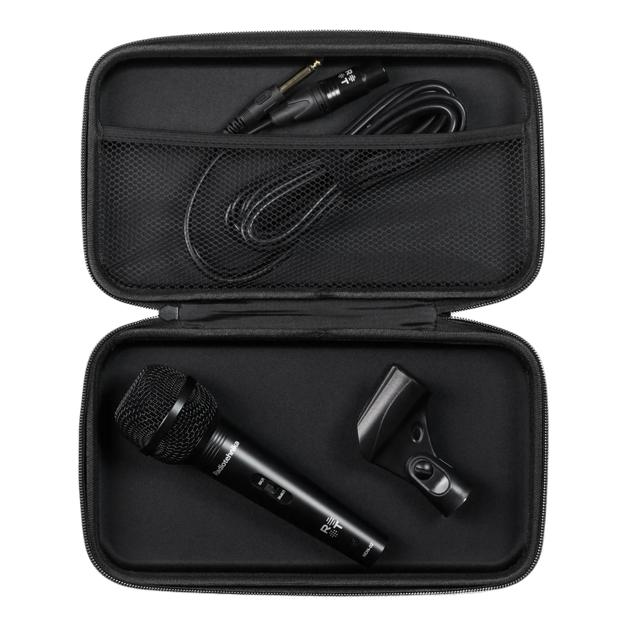 Учитывая рабочую специфику MDN-02, разработчики позаботились о компактности и удобстве хранения. Микрофон поставляется с надежным и удобным чехлом, который благодаря своим небольшим размерам очень легко, удобно и безопасно брать с собой. В комплекте также идет кабель XLR-Jack длиной 4 метра. С его помощью можно без проблем подключаться к портативной колонке или караоке-системе. В качестве полезных сопутствующих аксессуаров идут держатель микрофона и универсальный резьбовой переходник.