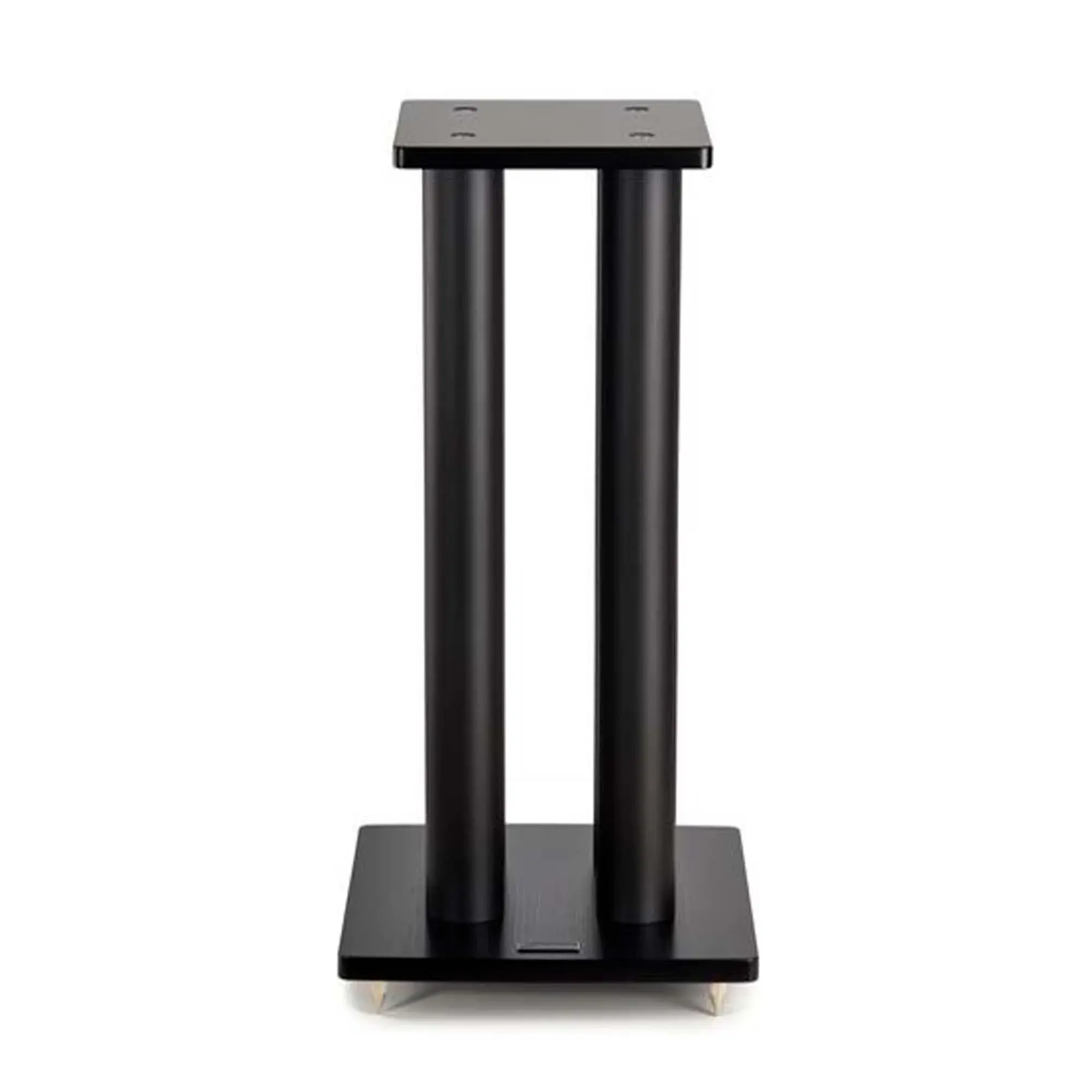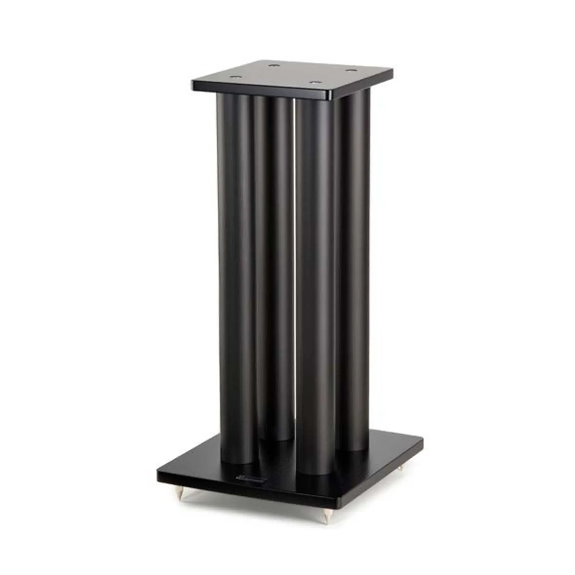 Напольные стойки высотой 760 мм, подходят для размещения акустики высотой до 65 см. Четыре опоры и нижняя плита увеличенной до 310 x 340 мм площади делают стойку максимально устойчивой. Опоры можно заполнить балластом для дополнительного гашения вибраций. Площадь верхней плиты составляет 230 x 240 мм. Стойки комплектуются регулируемыми по высоте шипами-опорами.