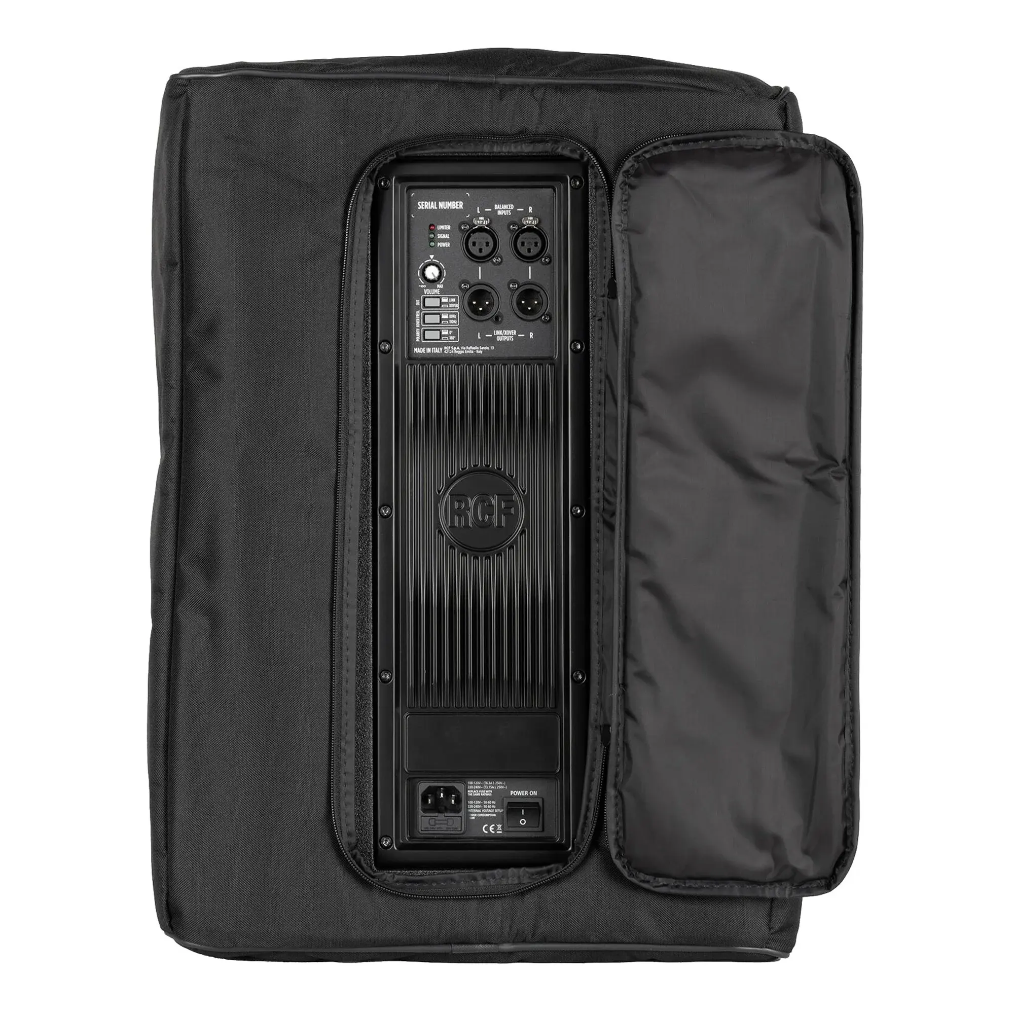 Защитите свой сабвуфер с помощью RCF CVR 005, мягкого чехла для сабвуфера SUB 702-AS MK3, который изготовлен из прочной, устойчивой к атмосферным воздействиям полиэстеровой ткани, подкладки из поролона и закрывается на молнию и сенсорную застежку. Передняя крышка открывается и блокируется с помощью сенсорной застежки с одной стороны и имеет множество отверстий для задней соединительной панели, крышки для крепления на столбе и ручек.