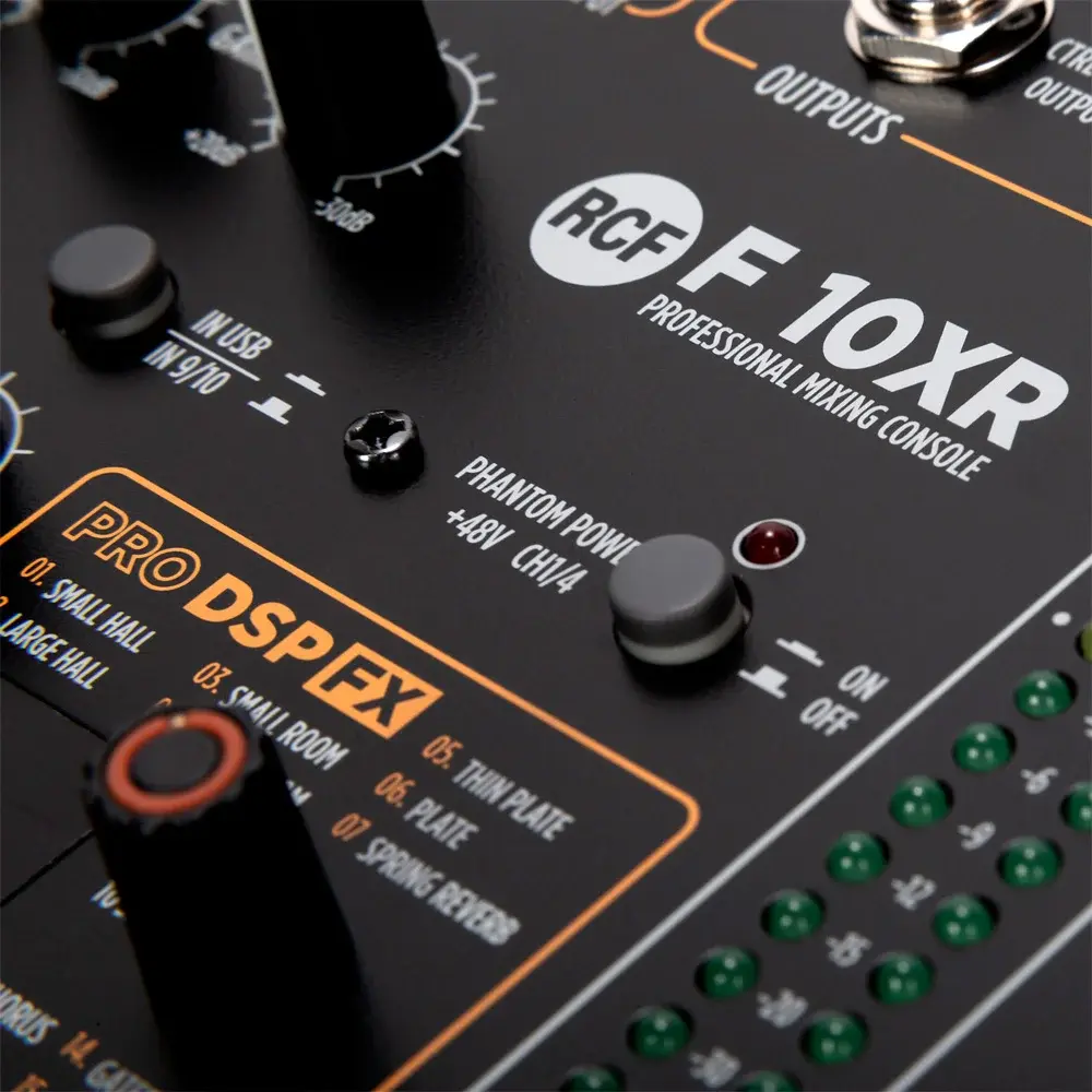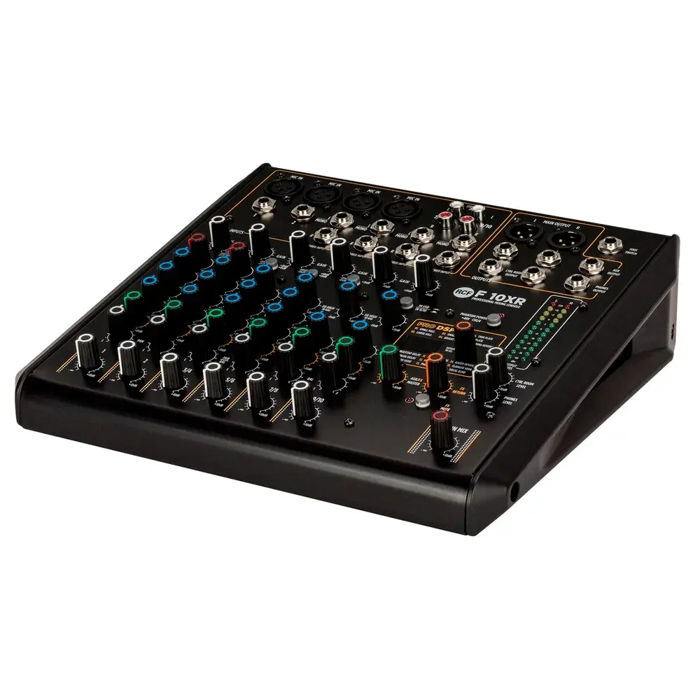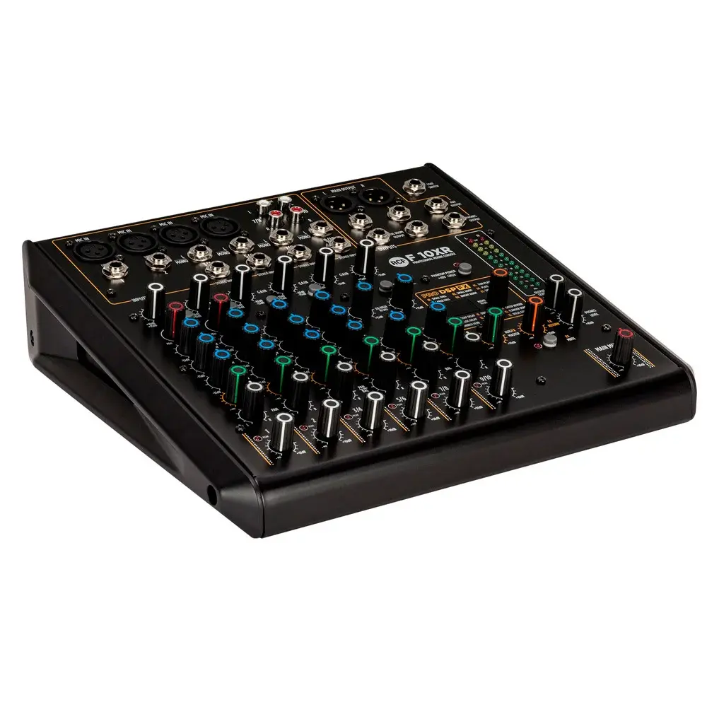 Данная модель является мощным инструментом как для любителей, так и для музыкантов профессионального уровня. Микшер оборудован 10-ю полностью сбалансированными каналами. Плата PRO DSP FX оснащена профессиональными пресетами для работы с такими эффектами как реверберация, задержки (Mono, Stereo и Multitap), хорус, фленджеры и эхо.