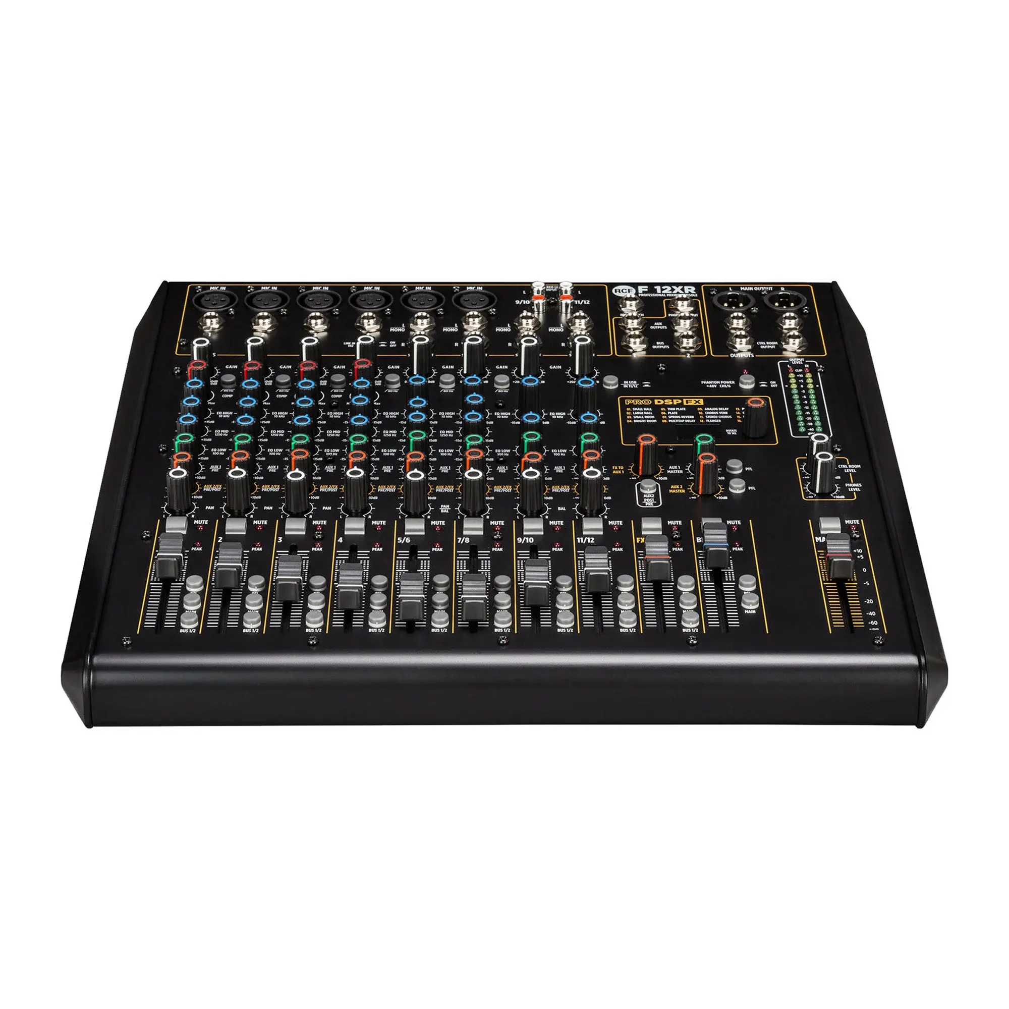 Данная модель является мощным, надежным и простым в использовании инструментом для специалистов любого уровня. Микшер RCF 12XR совмещает возможности аналогово микширования с современными функциями цифрового DSP. Прочное металлическое шасси вмещает 12 каналов, высококачественные микрофонные предусилители и 3-полосный эквалайзер. Благодаря встроенному модулю PRO DSP FX с 16-ю заводскими пресетами, микшер способен работать с такими цифровыми эффектами студийного качества, как: реверберация, хорус, задержка и фленджер.