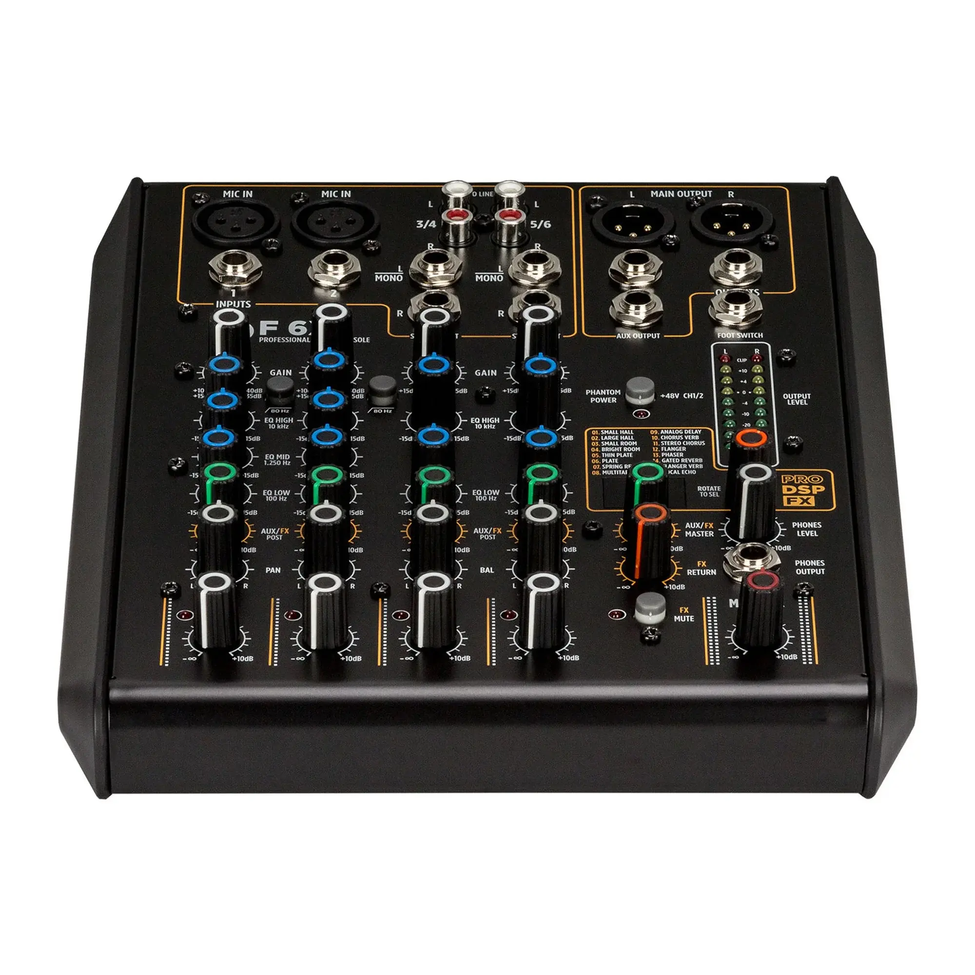 Компактная и надежная конструкция предоставляет все необходимые профессиональные функции, что делает данный микшер отличным выбором для музыкантов, звукорежиссеров и саунд дизайнеров. Внутренняя плата PRO DSP FX оснащена заводскими пресетами для работы с такими эффектами как реверберация, задержка, хорус, фленджеры и эхо-сигналы. Микшер предоставляет платформу для осуществления высокоуровнего звукового контроля с интуитивно понятным рабочим процессом маршрутизации.