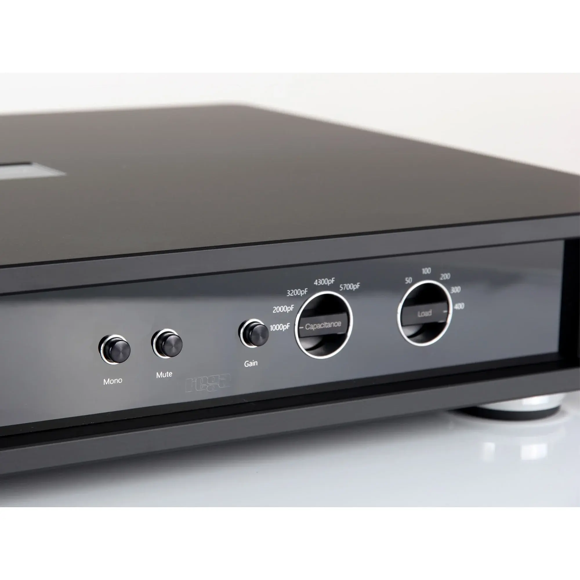 Референсая модель получила специально разработанный для нее полноразмерный корпус, который минимизирует влияние вибраций на внутренние элементы фонокорректора. Прямо с фронтальной панели можно переключиться в режим «Моно», отключить звук и выбрать один из двух доступных коэффициентов усиления сигнала (69,5 или 63,5 дБ). Там же доступен выбор одного из пяти значений входного сопротивления нагрузки (50, 100, 150, 300 или 400 Ом) и одного из пяти предустановленных значений входной емкости (1000, 2000, 3200, 4300 или 5700 пФ). На тыльной панели Rega Aura имеется RCA-вход и два выхода: несимметричный RCA и балансный XLR.