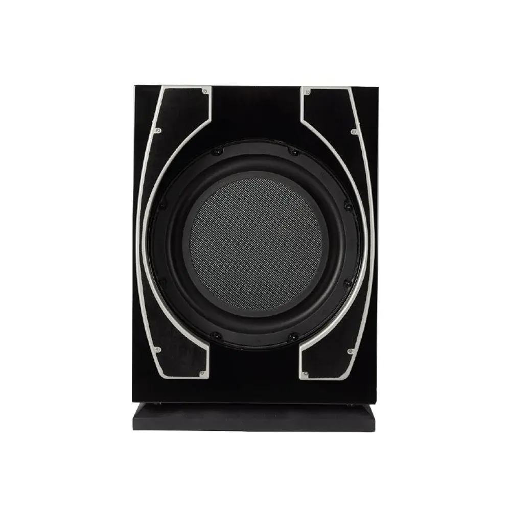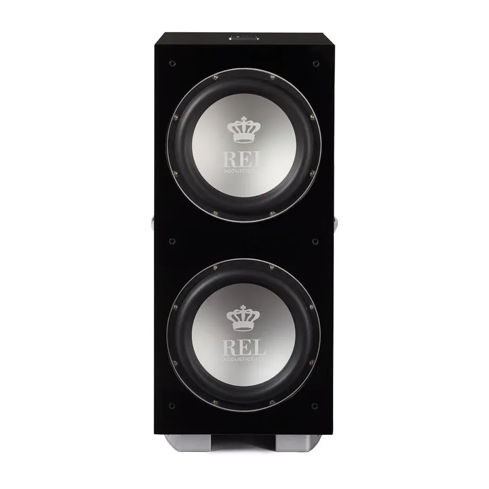На фронтальной панели REL 212/SX установлено два басовика диаметром 12 дюймов с литыми диффузорами, обратная сторона которых дополнительно усилена карбоном. Басовики расположены по вертикали, что, как показал опыт инженеров компании, делает распространение низких частот более равномерным (создается эффект работы линейного массива сабвуферов). На задней панели REL 212/SX расположен 12-дюймовый пассивный излучатель, а еще один смонтирован в основании. Последний представляет собой новую разработку компании и имеет плоский диффузор из углеволокна. Опоры сабвуфера создают для этого излучателя достаточно свободного пространства, чтобы его звуковые волны равномерно распространялись по всем направлениям.