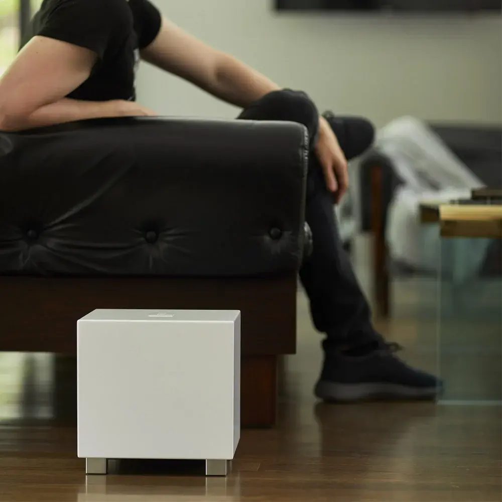 Сабвуфер оснащен низкочастотным динамиком диаметром 6,5 дюймов с алюминиевым диффузором, перемещающимся с увеличенной амплитудой. Благодаря этому динамик способен создавать существенное звуковое давление и воспроизводить глубокие басы, которые трудно ожидать от сабвуфера такого размера. Кроме того, размещение НЧ-динамика на нижней панели обеспечило равномерное распределение басов в комнате, и выбор места для установки не вызовет никаких затруднений.