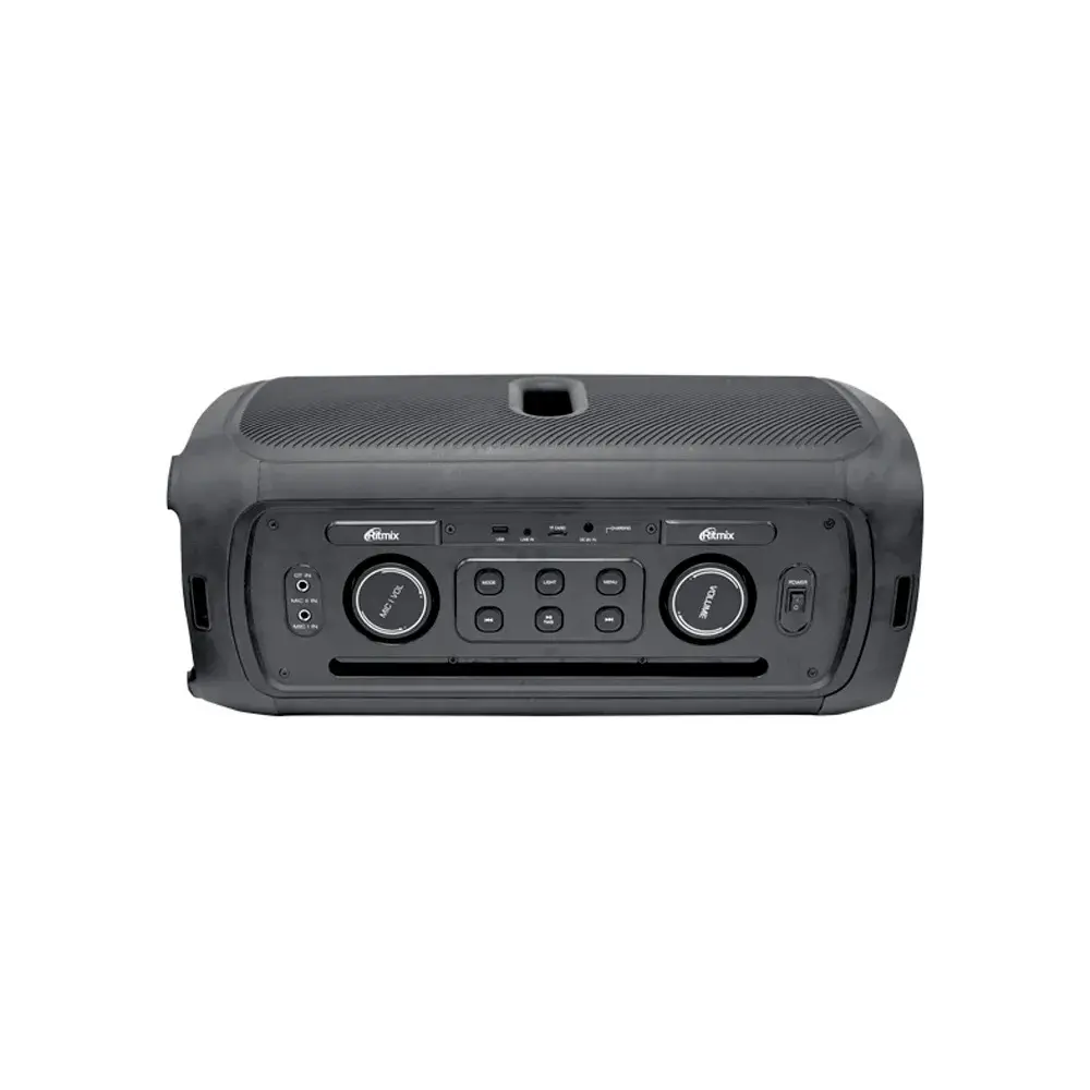 Bluetooth-колонка, имеющая AUX-вход, два 6.3 мм входа для микрофона и встроенный FM-радиоприёмник, а также способная воспроизводить музыку с карточки microSD или USB-флешки, 2 микрофона в комплекте.