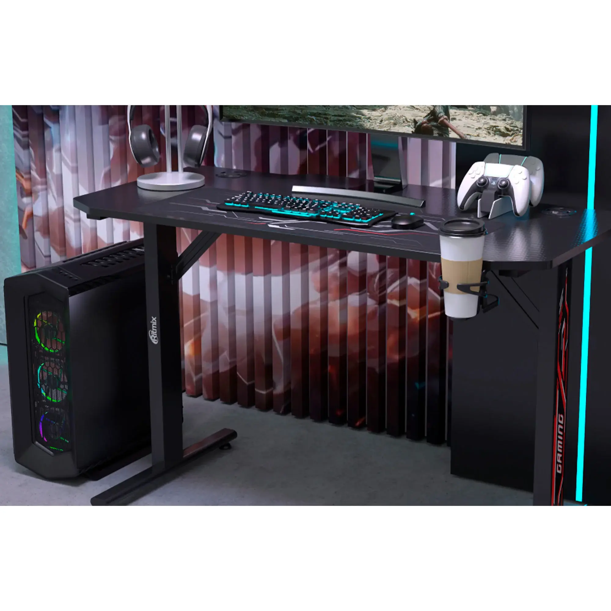 Стол оснащен ковриком для мыши, особым подстаканником с подвесом для наушников, органайзерами кабельной системы с фиксаторами проводов