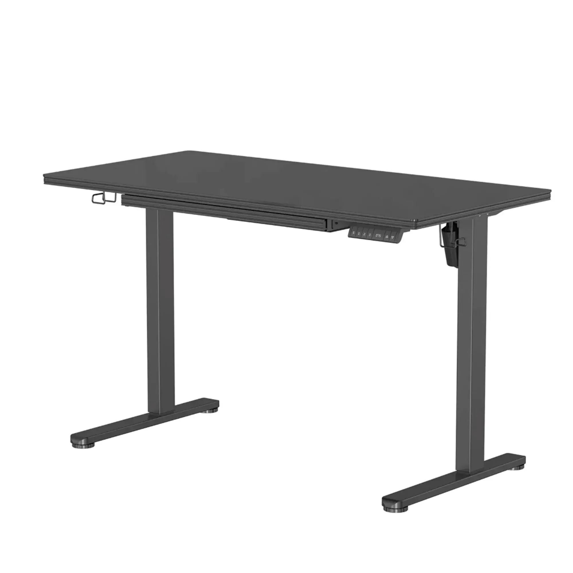 Ritmix TBL-1207S - стол с регулируемой высотой и памятью на 3 положения. Цельная столешница из закаленного стекла 120*60 см, выдвижной ящик, Type-C выход зарядки 2А. Электропривод, плавная регулировка, автостоп – защита от столкновений. Нагрузка до 50 кг.