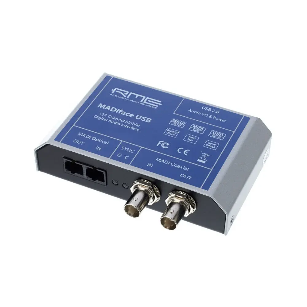 Профессиональный аудиоинтерфейс RME MADIface USB предлагает полный мобильный функционал для работы с протоколом MADI (Multichannel Audio Digital Interface) для студий звукозаписи. В данном устройстве представлено 64 входных и 64 выходных канала с частотой дискретизации до 192 кГц. Данный интерфейс обладает тем же уровнем функционала MADI, что и «взрослые» платы, обеспечивается полная совместимость со всеми устройствами, которые обладают данным протоколом.
