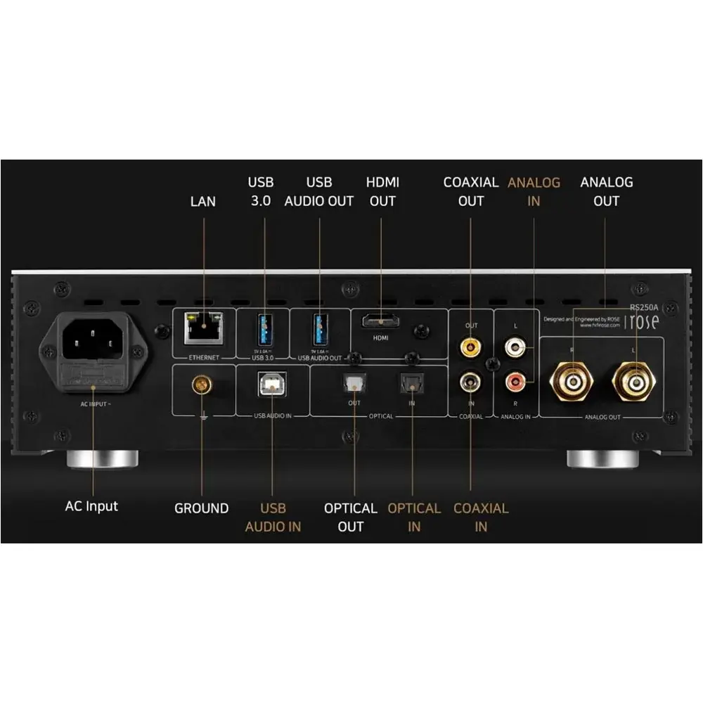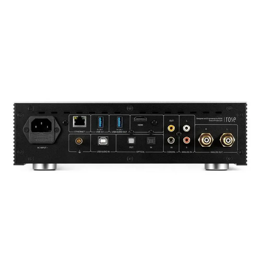 Rose RS250 со встроенным флагманским ЦАП обеспечивает малошумящий звук сверхвысокого разрешения с низким уровнем искажений и богатой аналоговой плотностью благодаря запатентованной обработке. Инженеры-акустики и аудиомастера с 30-летним опытом настраивают устройство, чтобы передать оригинальное впечатление и замысел высококачественного звука. Оно ясно выражает весь диапазон, от великолепного и богатого баса до деликатных и элегантных высоких частот. Линейный источник питания обеспечивает чистое и надежное питание процессора и цепей аудиовыхода. Применяется полностью линейный источник питания и экранирование, а шум, который может передаваться на чувствительный ЦАП, блокируется для наилучшего воспроизведения звука.
