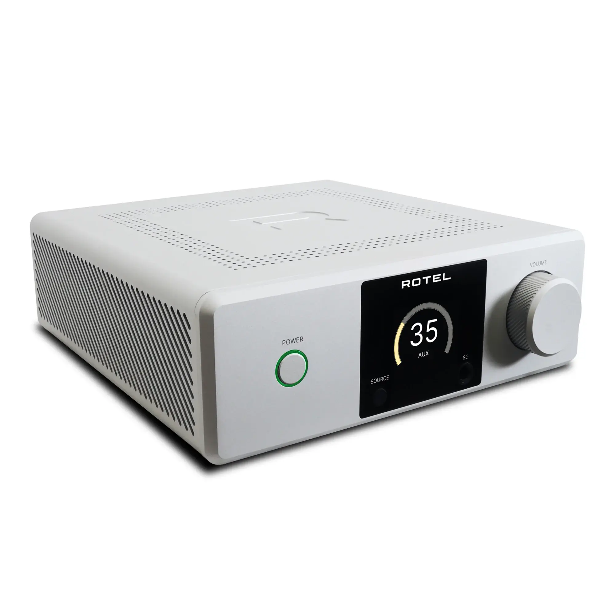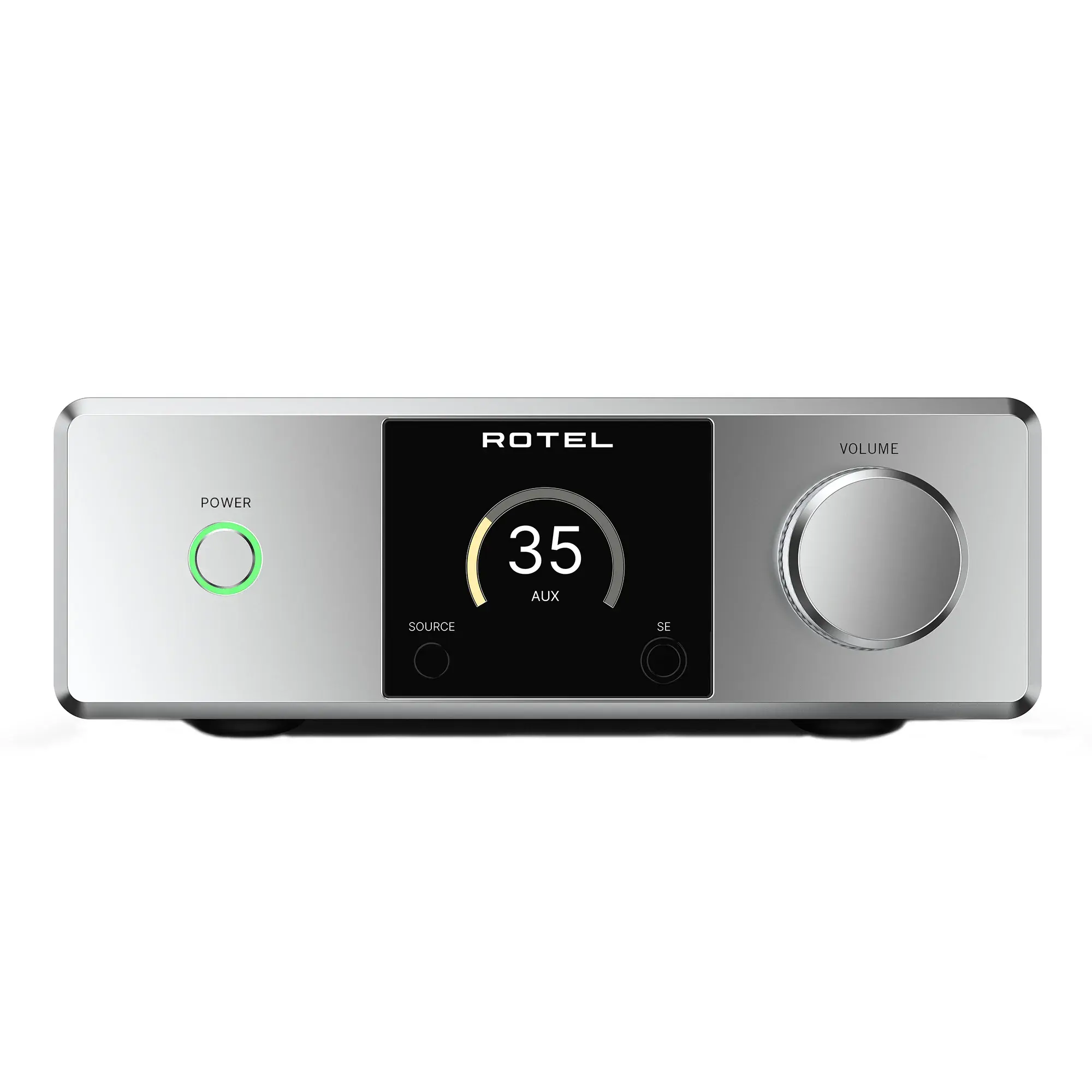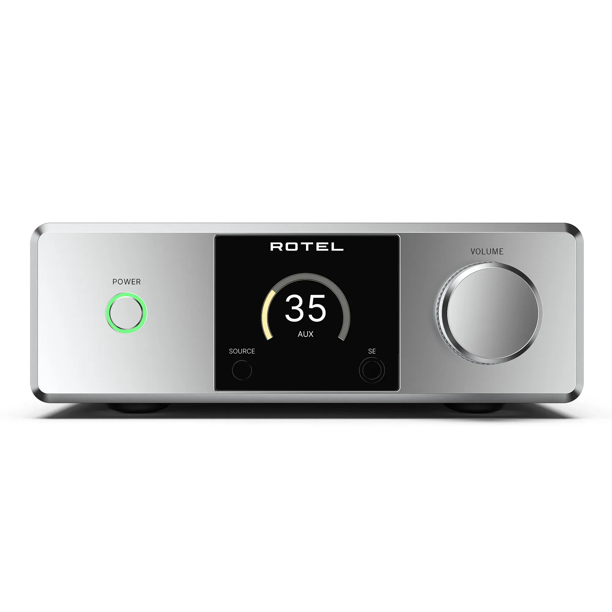 Передняя панель оснащена полноцветным графическим дисплеем с высоким разрешением для интуитивно понятной настройки и управления, точной регулировкой громкости и 3.5-дюймовым (6,35 мм) разъемом для наушников для персонального прослушивания. Алюминиевый пульт дистанционного управления, входящий в комплект поставки, придает устройству элегантность и удобство в использовании.