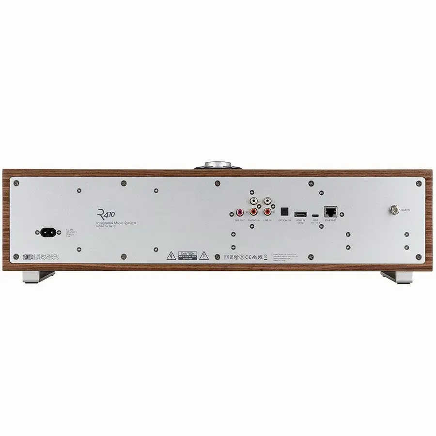 Hi-Fi-минисистема Ruark Audio R410. Комбинированная стереосистема высокого класса с функцией стриминга обеспечивает стереозвук и обладает усилителем класса D мощностью 120 Вт. Фирменные динамики НЧ 75 мм и ВЧ 20 мм. Подключение по Ethernet и Wi-Fi, Bluetooth (aptX HD, SBC, AAC). Поддержка UPnP/DLNA, TIDAL, Spotify Connect, Deezer, Amazon Music.