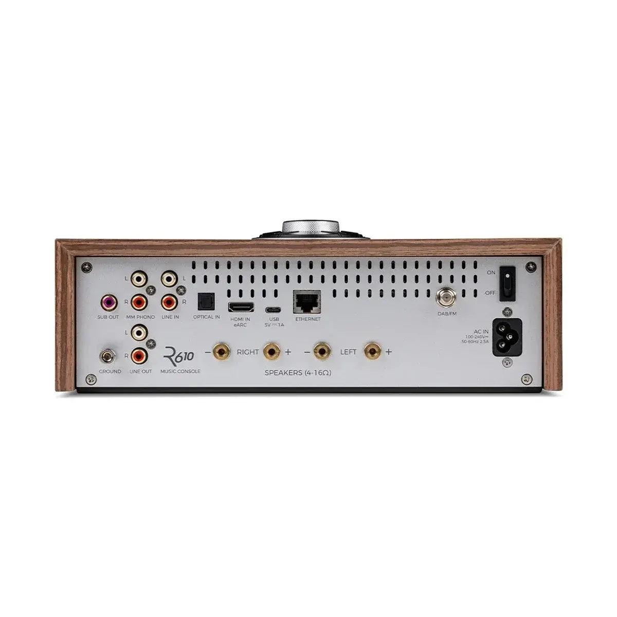 Наличие различных входов позволяет подключать множество источников звука. Ruark R610 оборудован качественным фонокорректором для проигрывателей с MM-звукоснимателями, разъемом HDMI eARC для подключения к телевизору и оптическим входом.