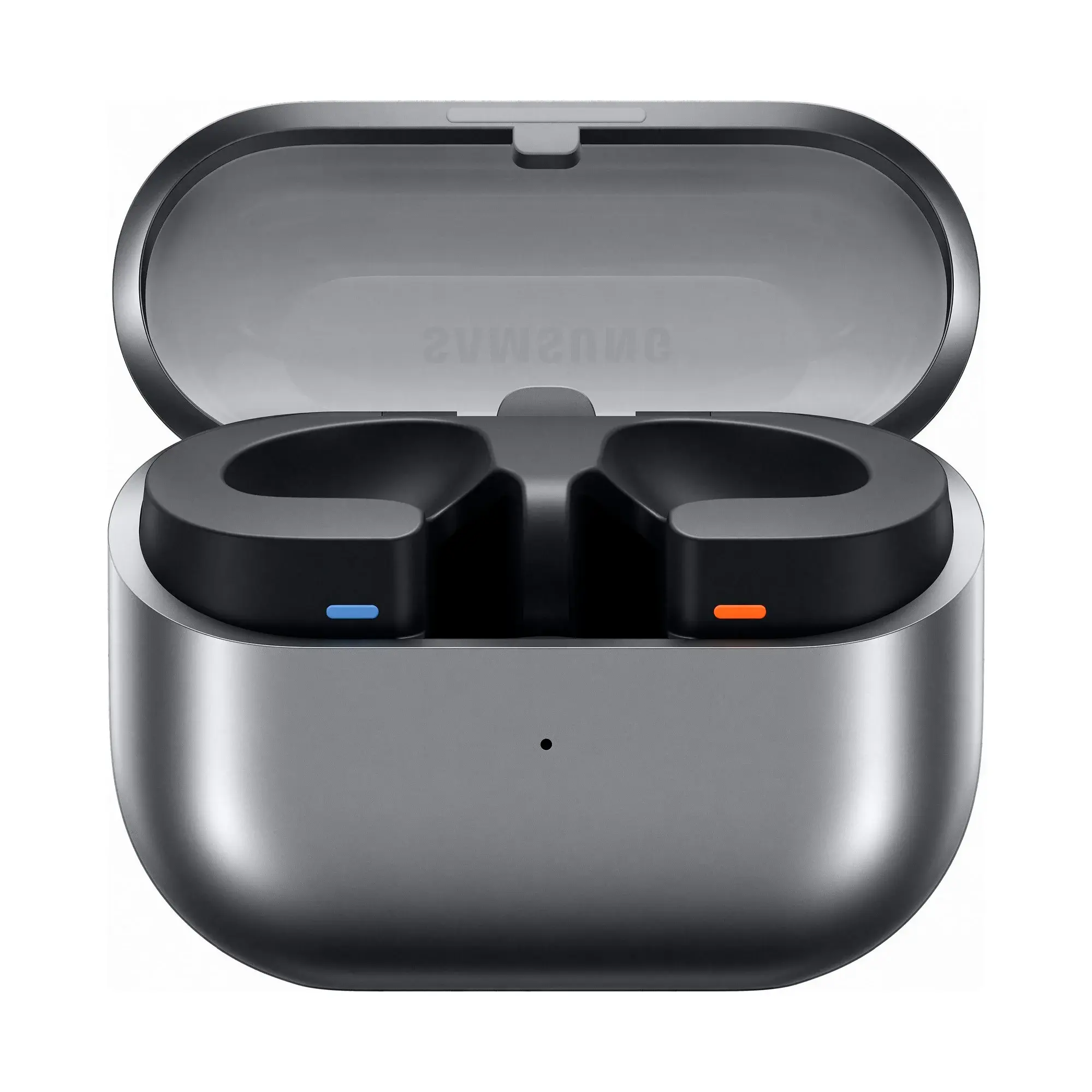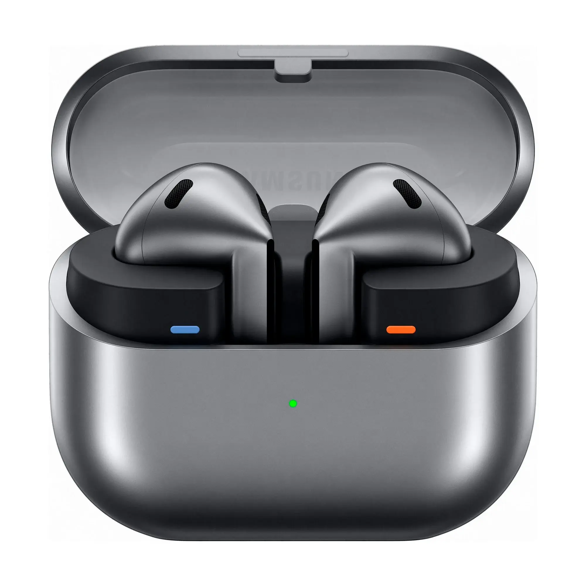 Samsung Galaxy Buds3 — одни из самых эффектных наушников, созданных Samsung. Элегантный кейс с полупрозрачной крышкой, эргономичная форма, светодиодные ленты, показывающие уровень заряда, — всё это придаёт модели особый шарм.