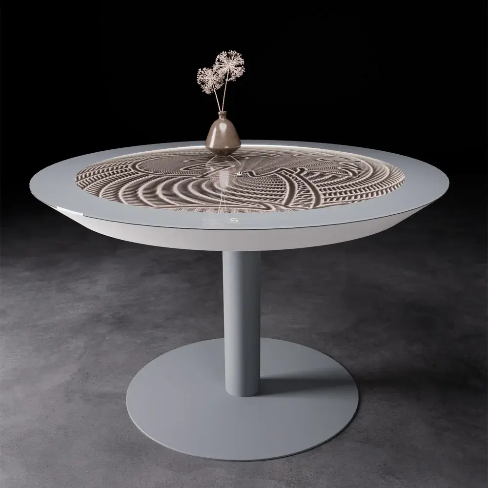 С каждым столом в комплекте предоставляется SD карта со множеством рисунков. Ритмично сменяя друг друга, они превращаются в бесконечный плей-лист. Нет никаких ограничений! Вы можете отобразить на песке абсолютно любую картинку, узор или логотип вашей компании.