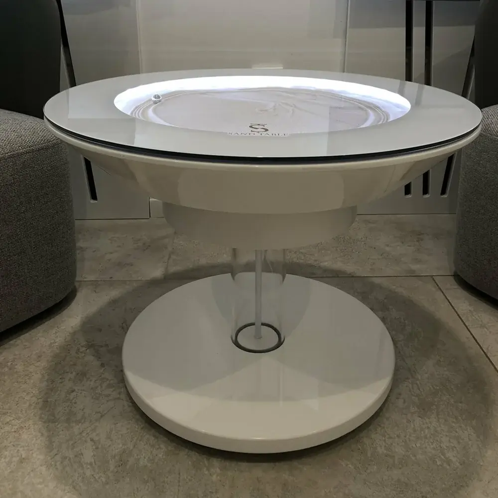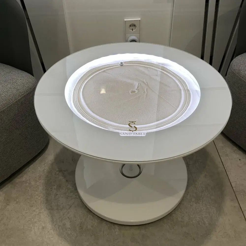 Для любителей острых ощущений, можно выбрать любой цвет подсветки через приложение на iPhone. Стол выдерживает нагрузку до 100 килограмм. Чтобы обеспечить сохранность, столешница накрыта прочным закалённым стеклом Optiwhite, что позволяет в полной мере насладиться движением металлического шара по песку. К столу добавлены модули беспроводной зарядки, чтобы заряжать телефоны, часы, наушники и т.д.