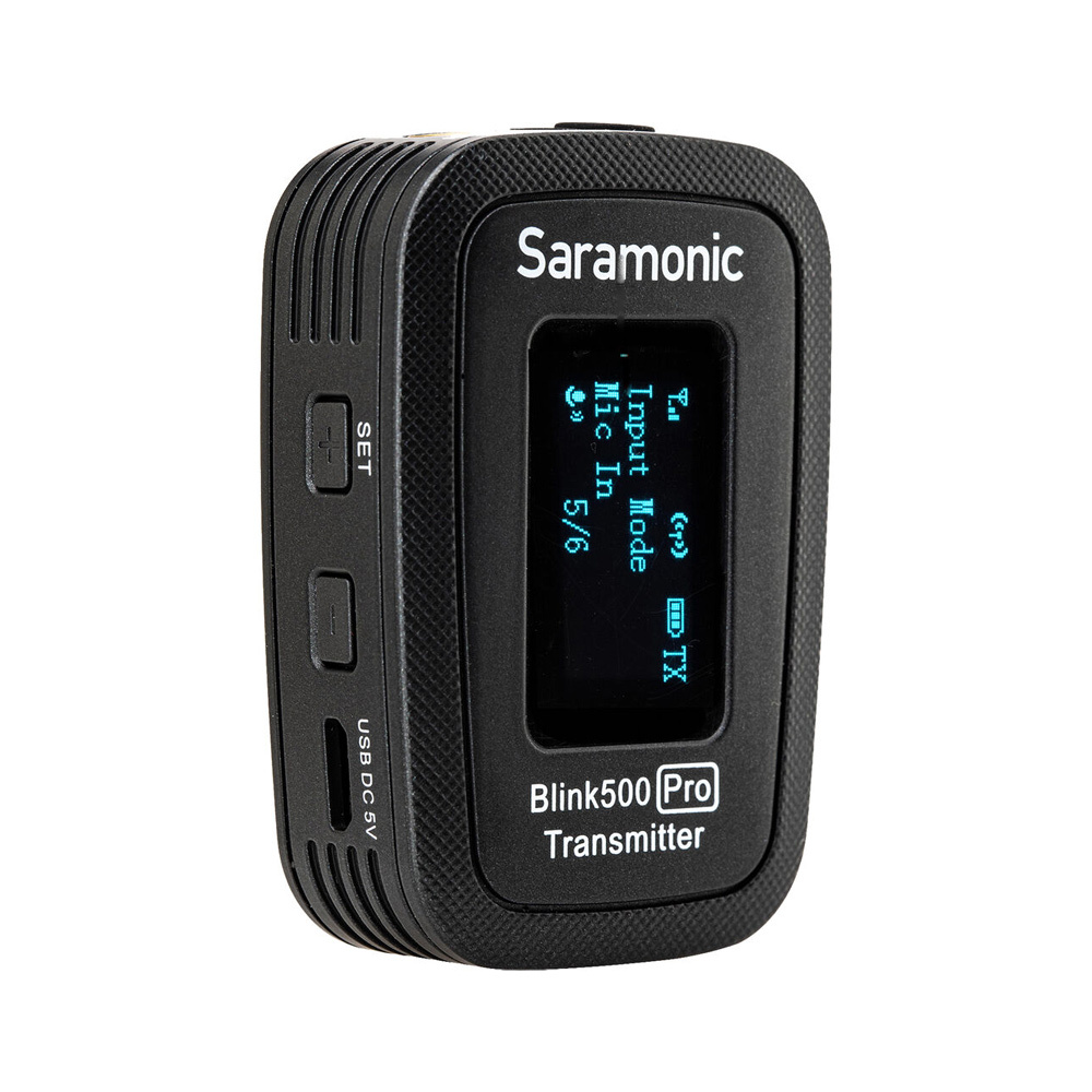 Компактная цифровая беспроводная система. Pro версия Blink 500 отличается от обычной четким OLED экраном, на котором отображается ключевая информация (уровень сигнала, уровень заряда, уровень усиления микрофона / громкости наушников, моно или стерео режим). Передатчик теперь можно подключить не только к микрофону, но и к линейному выходу (например, с пульта звукорежиссера), а к приемнику стало возможно подключить наушники – для живого мониторинга звука. Время работы на одном заряде увеличено с 6 до 8 часов, а дальность действия увеличена с 50 до 100 метров (без помех и препятствий). Задержка звука снижена в 2 раза: с 12 до 6 мс.