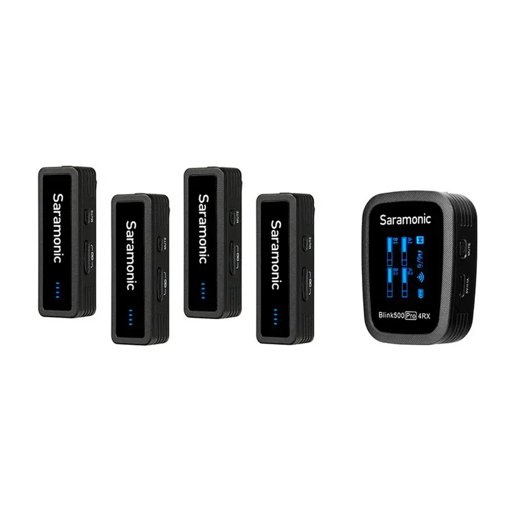 Saramonic Blink500 Pro B8 представляет собой универсальную цифровую радиосистему для видеосъемок, использовать которую можно с зеркальными и беззеркальными фотокамерами, видеокамерами и смартфонами. Данная модель позволяет организовать беспроводную трансляцию звука для 4 человек с помощью 4-канального ресивера и 4 трансмиттеров, совмещенных с микрофонными элементами. Передача аудиосигнала осуществляется в РЧ-диапазоне 2.4 ГГц, а зона действия в пространстве может достигать 50 метров при идеальных условиях.