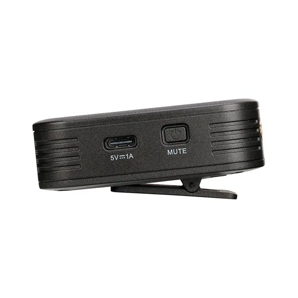 Передатчики представлены в миниатюрных корпусах весом всего по 17 грамм каждый. Они оснащены конденсаторными всенаправленными микрофонами, которые позволяют записать аудиосигнал в диапазоне 50 Гц – 18 кГц. Максимальное звуковое давление достигает 120 дБ, а выходная РЧ-мощность составляет 10 мВт. Корпус с клипсой оснащен кнопкой Mute и регуляторами входной громкости.