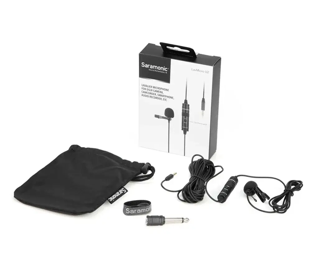 Saramonic LavMicro U2 - это сверхкомпактный петличный микрофон на клипсах, который обеспечивает насыщенный звук вещательного качества. Он оснащен выходным разъемом TRRS 3,5 мм и специальным переключателем, который переключает режимы вывода камеры и телефона, переключая выход на TRS или TRRS. Позволяет пользователям подключаться непосредственно к микрофонному входу на камерах, смартфонах, планшетах, аудиомагнитофонах, компьютерах, микшерах и любых других устройствах с входом 3,5 мм. Адаптер с 3,5 мм на 1/4 дюйма также входит в комплект для подключения к более крупным входным разъемам. Он оснащен длинным встроенным кабелем длиной 6 м, который обеспечивает достаточную длину для достижения творческих приемов.