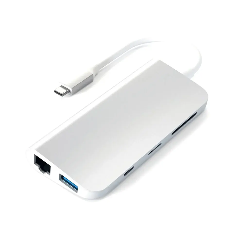 Адаптер Satechi Aluminum USB-C Multimedia Adapter добавляет множество подключений к вашему ноутбуку или настольному компьютеру, просто используя один порт USB-C.
