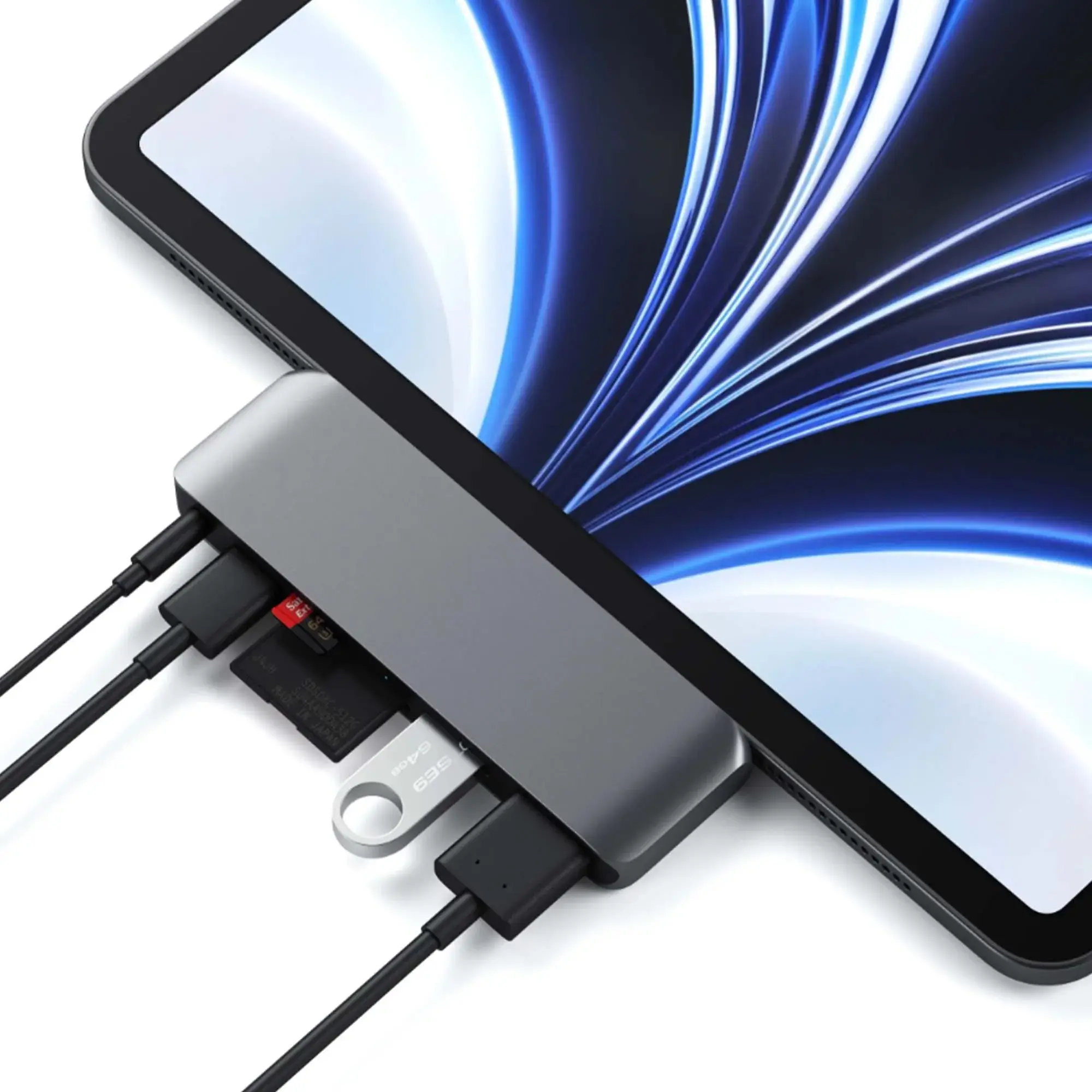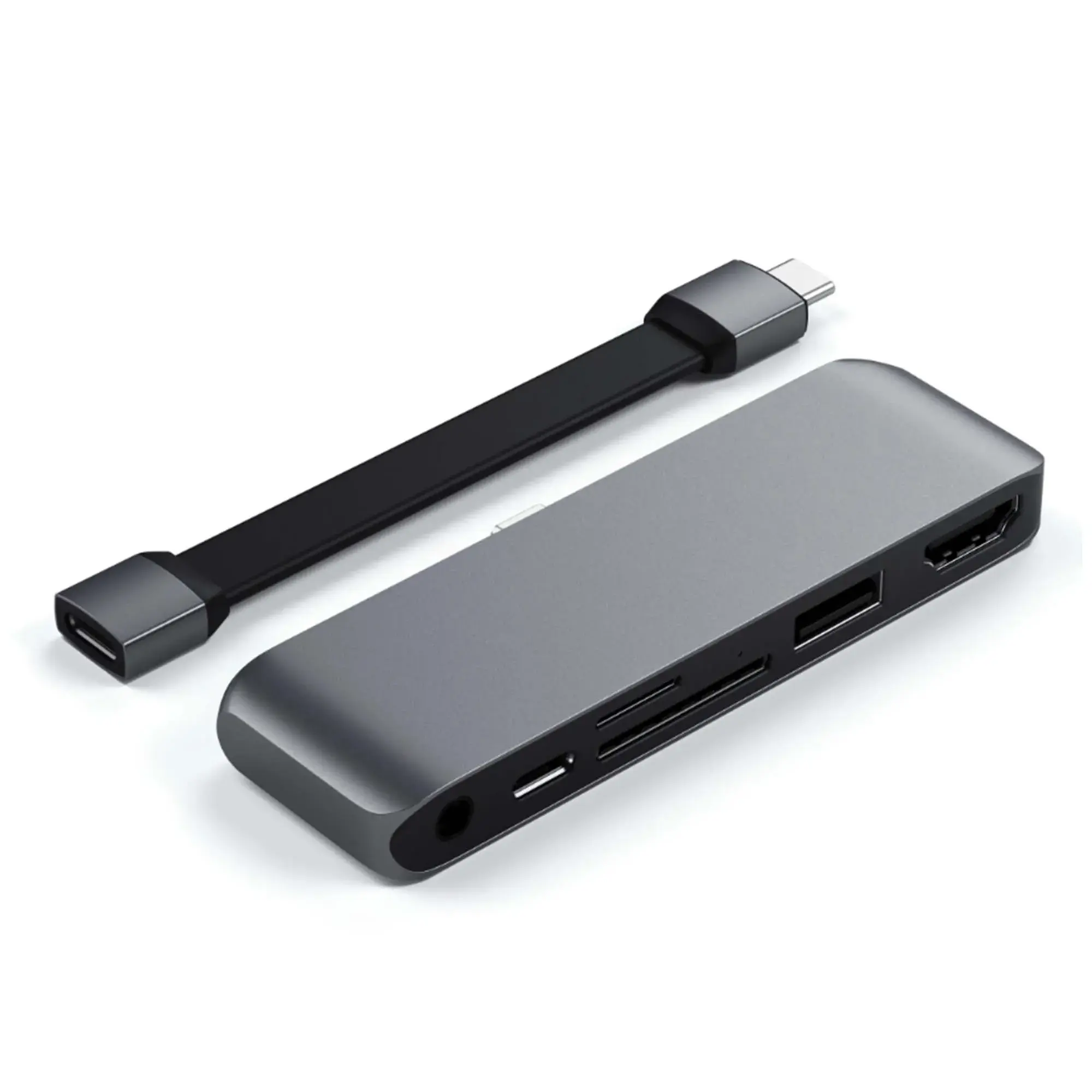Satechi USB-C Mobile PRO Hub SD - универсальный многопортовый хаб предназначен для удобной бесперебойной работы с MacBook и iPad, а также любыми другими ноутбуками и планшетами с разъемами Type C. Хаб оснащен портами USB-A и USB-C, 4K HDMI, сквозным портом USB-C с функцией быстрой зарядки Power Delivery.