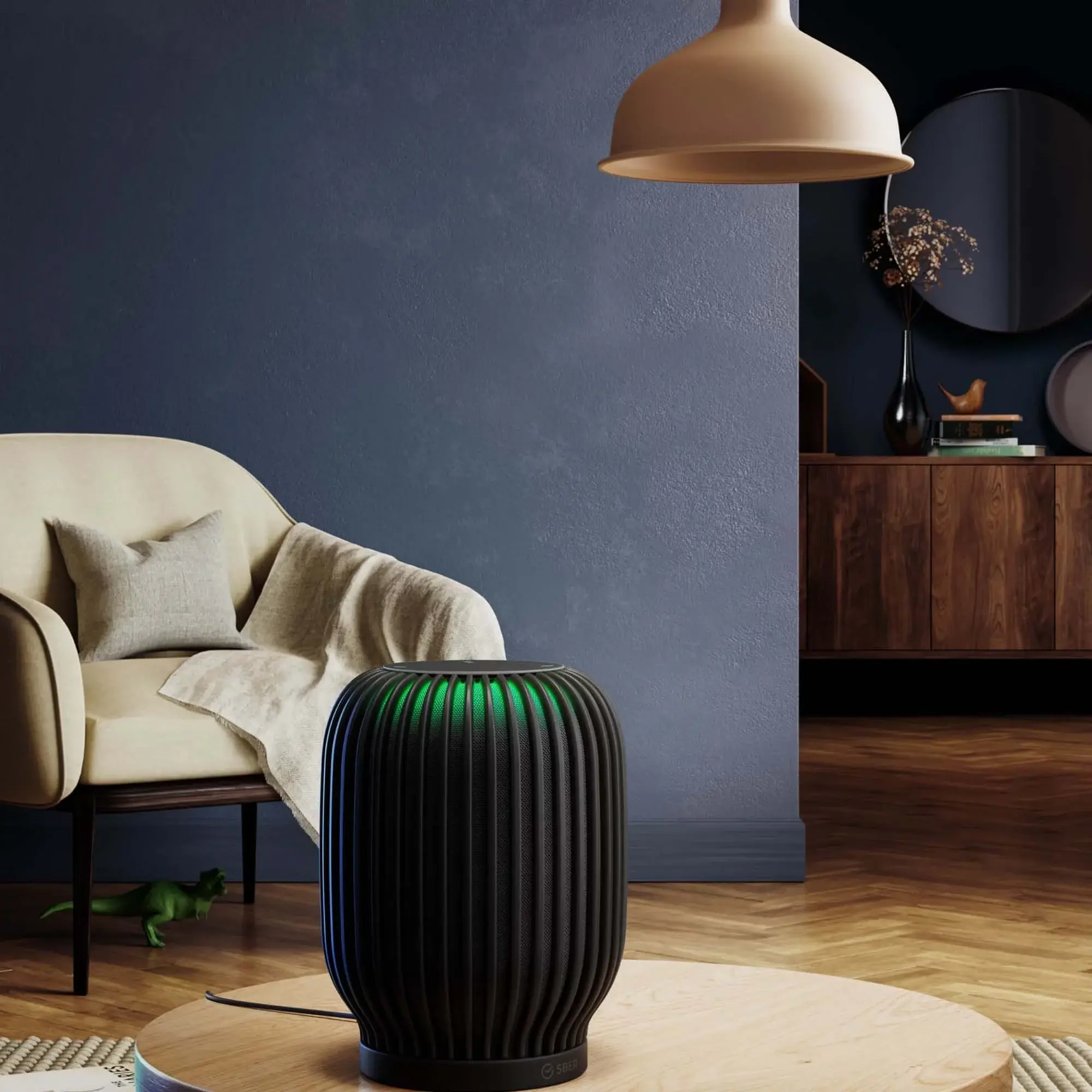 Колонка оснащена высокочастотным динамиком, буфером и двумя пассивными излучателями. Благодаря уникальному дизайну акустической камеры, SberBoom выдаёт насыщенный объёмный звук 360°. Вы слышите качественное звучание из любой точки комнаты — без искажений даже на высокой громкости. Общая мощность — 40 Вт.