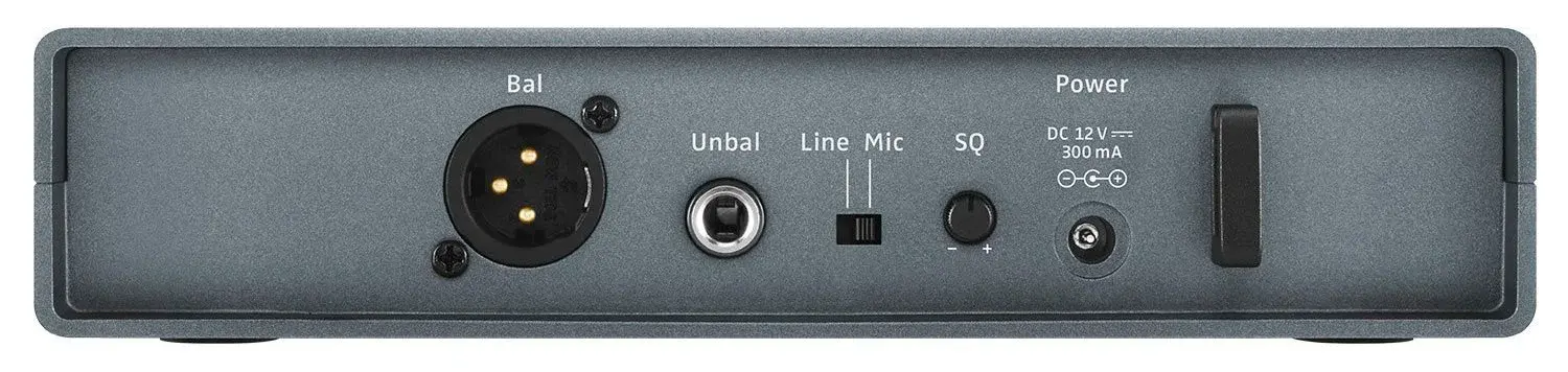 Беспроводной приёмник EM-XSW 1 из комплекта Sennheiser XSW 1-825-B конструктивно исполнен с разнесенными внутренними антеннами, а также выходами на XLR и 1/4" TS Jack. Поддерживается 10 каналов и 8 банков в каждом. Фронтальный дисплей отображает номер активного канала. Активно автоматическое управление частотами, для легкой установки возможна синхронизация через удаленный канал. Приёмник выполнен в корпусе из ABS-пластика. Частотный диапазон системы – 548-572 МГц. Входящий в комплект универсальный источник питания NT 12-5 CW работает с напряжением 100-240 Вольт.