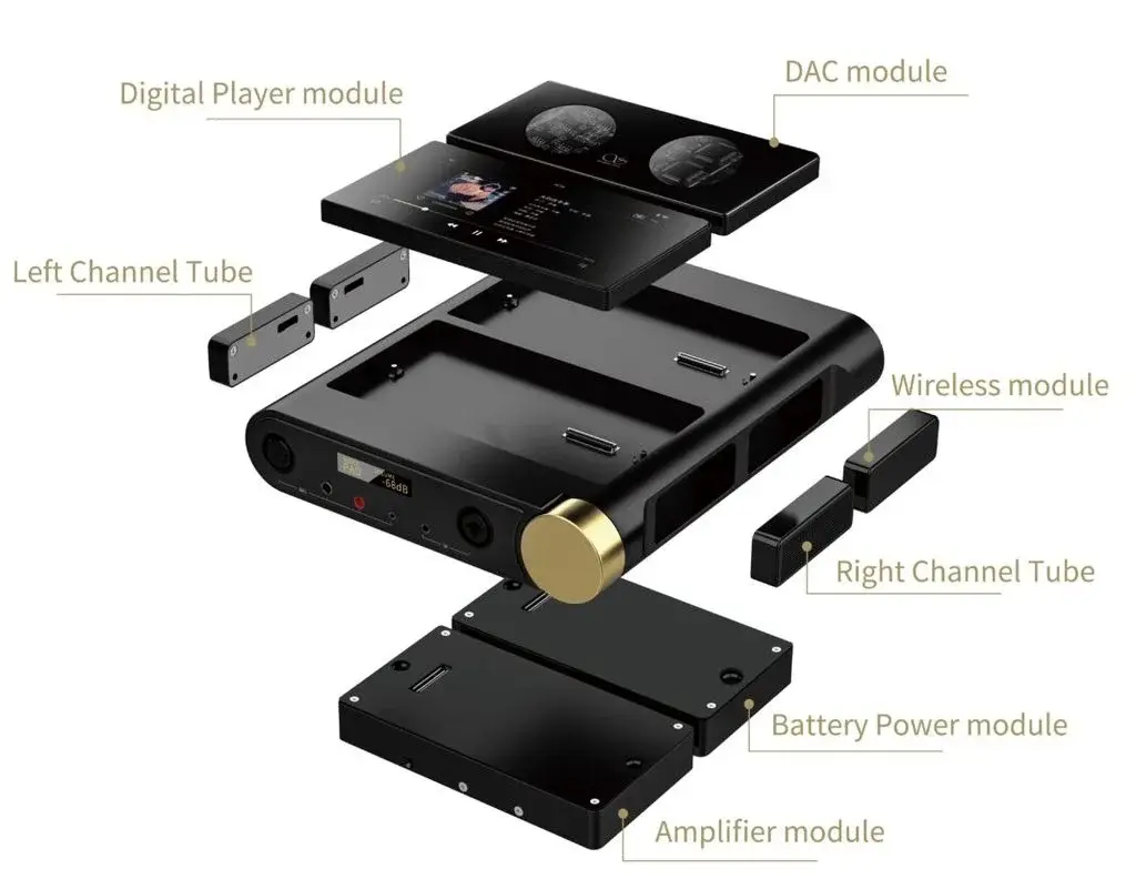 Модульный дизайн позволяет в будущем модернизировать и кастомизировать устройство. Плеер поддерживает множество потоковых сервисов, включая Tidal, Spotify, Qobuz и другие.