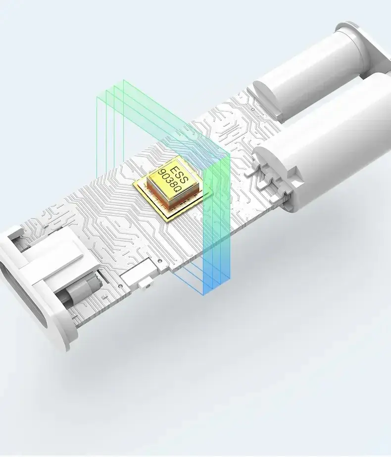 Несмотря на то, что Shanling UA2 Plus очень компактный, в него встроена высокопроизводительная схема, построенная на базе чипа ESS ES9038Q2M, эталонного компонента для приложений High Fidelity, объединяющего возможности цифро-аналогового преобразования.