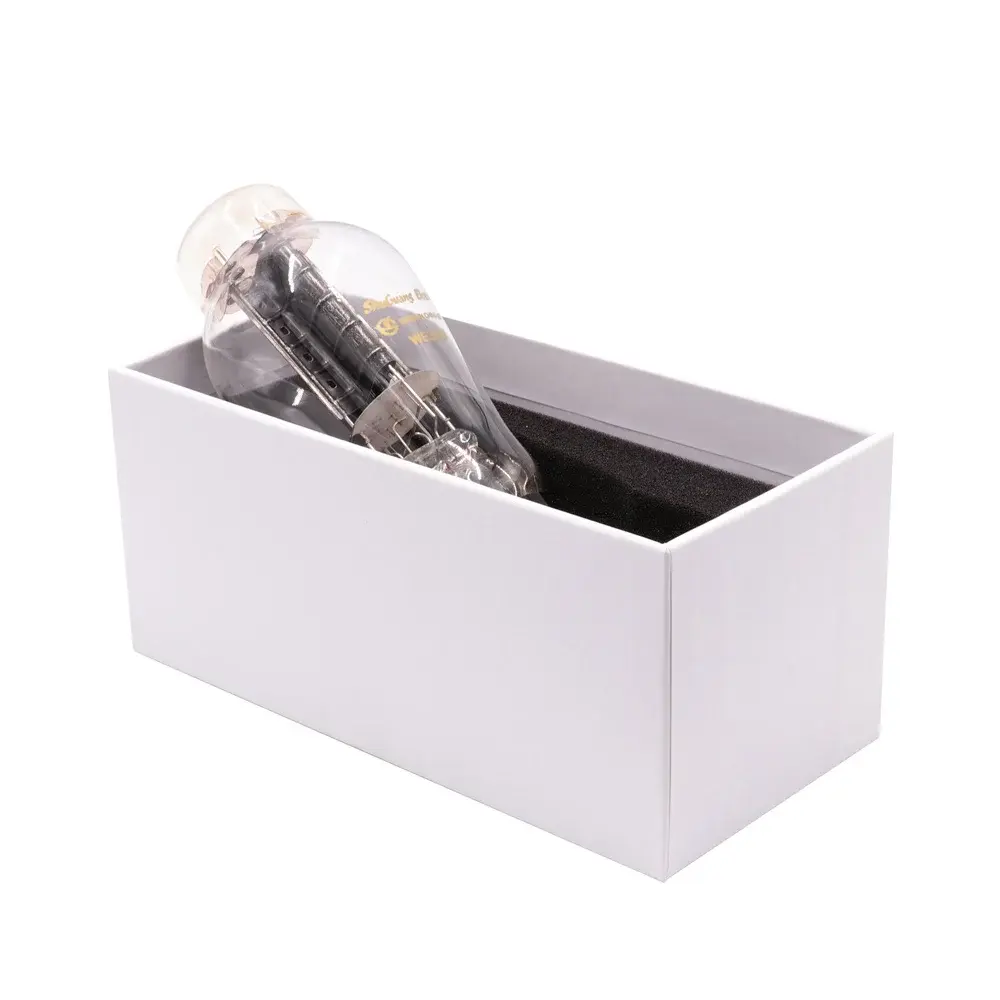 Первоначально разработанная в тридцатые годы ХХ века Bell Laboratories специально для применения в кинотеатральных усилителях, лампа Western Electric 300B до сих пор признаётся многими аудиофилами как лучшая лампа для высококачественного звукоусиления. 300В - идеально сочетает в себе отличные звуковые характеристики, идеальный внешний вид и прищемляемую цену.
